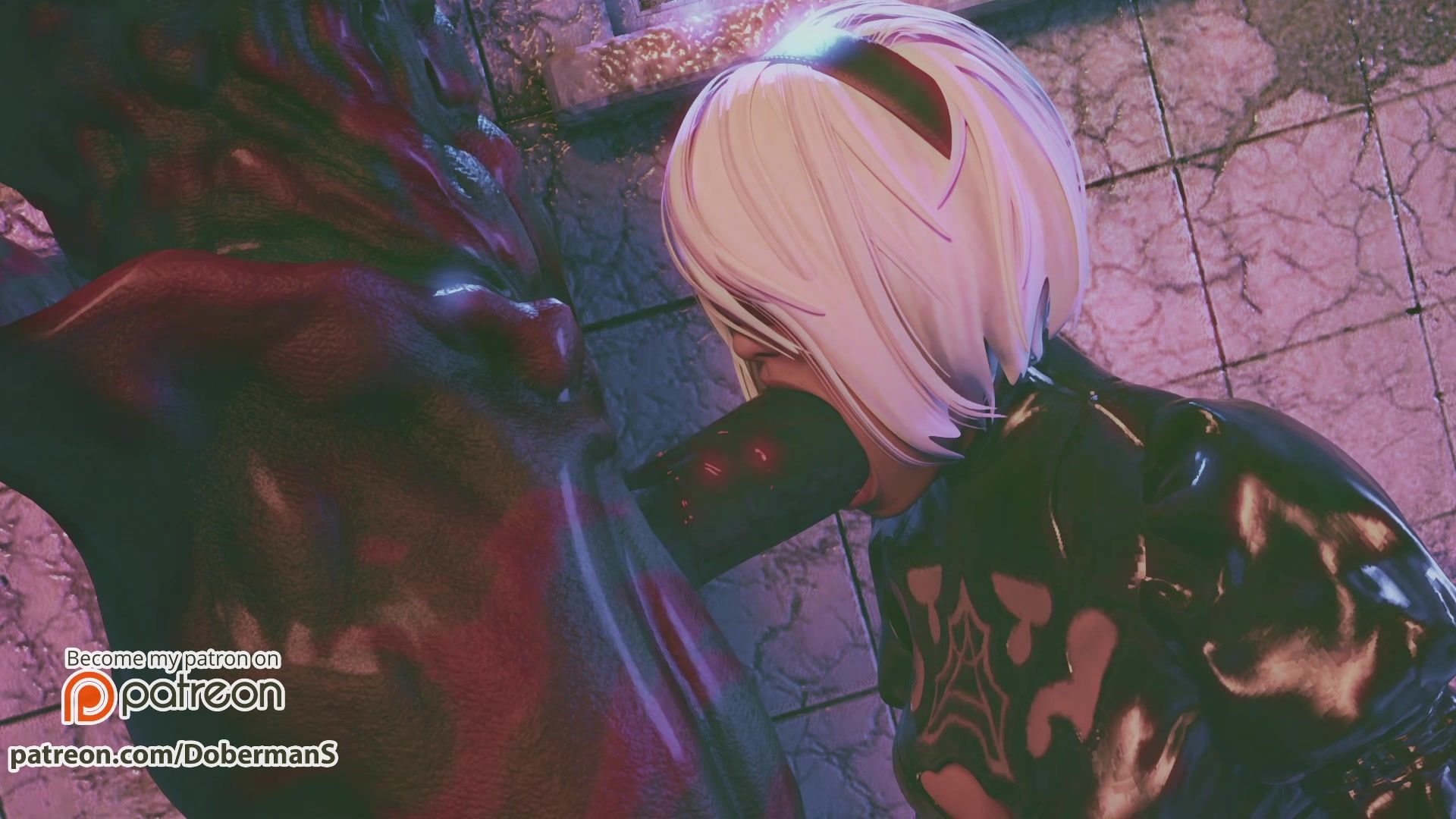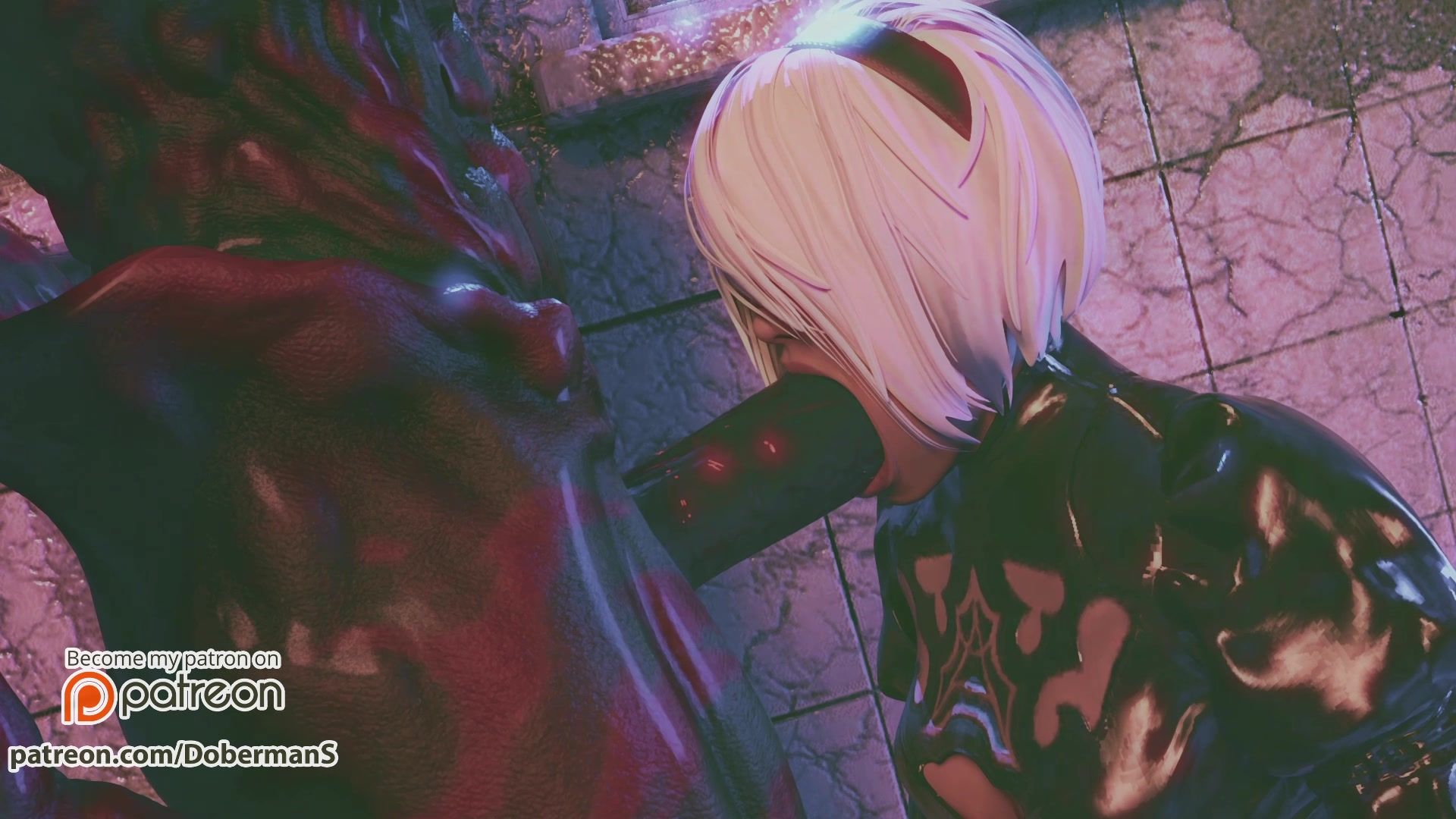 YoRHa 2B machen tiefen blowjob beängstigend großes monster