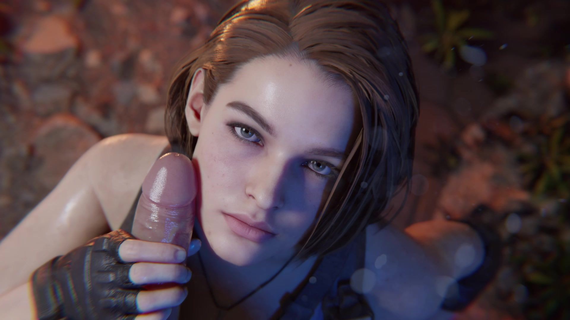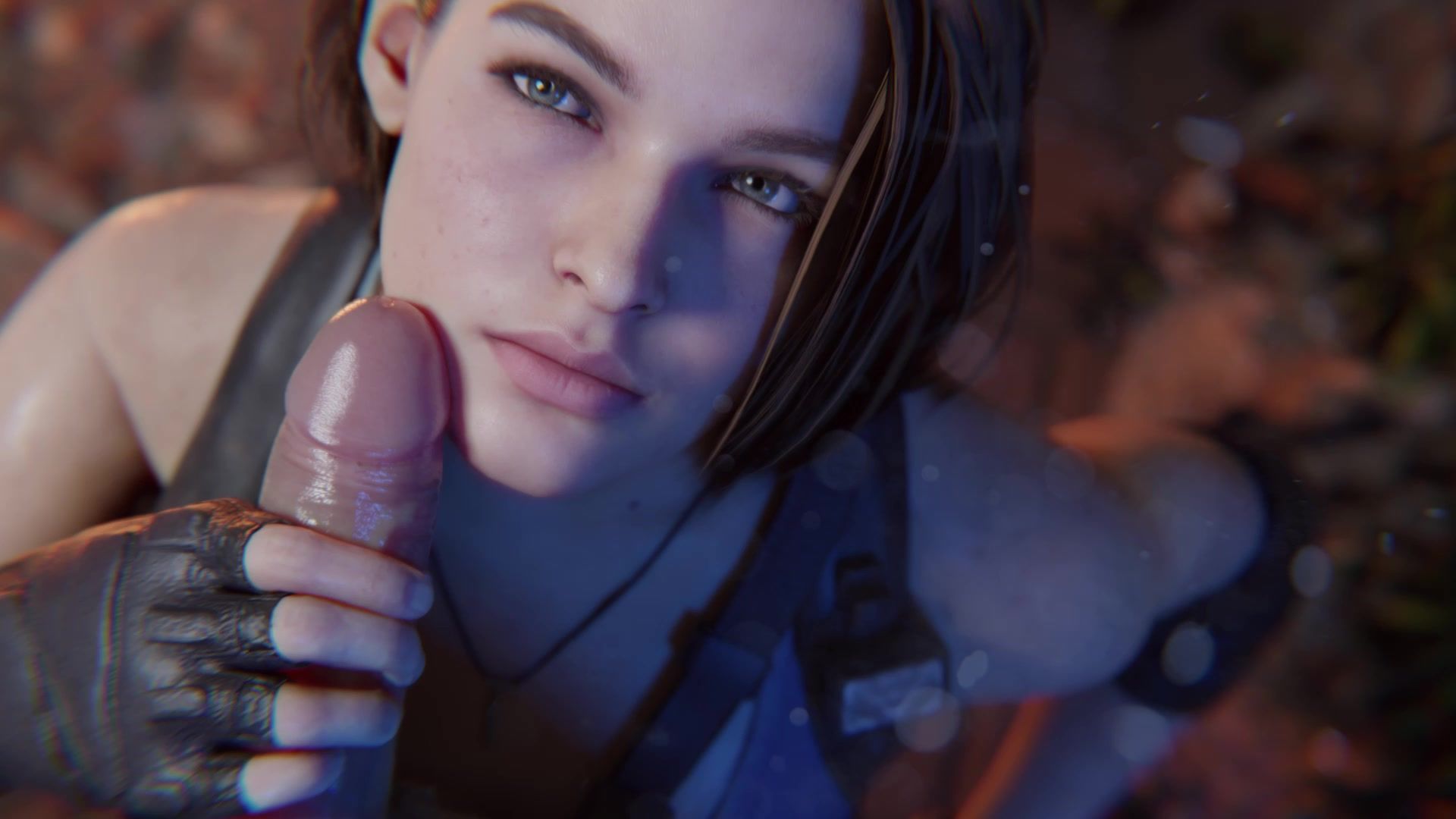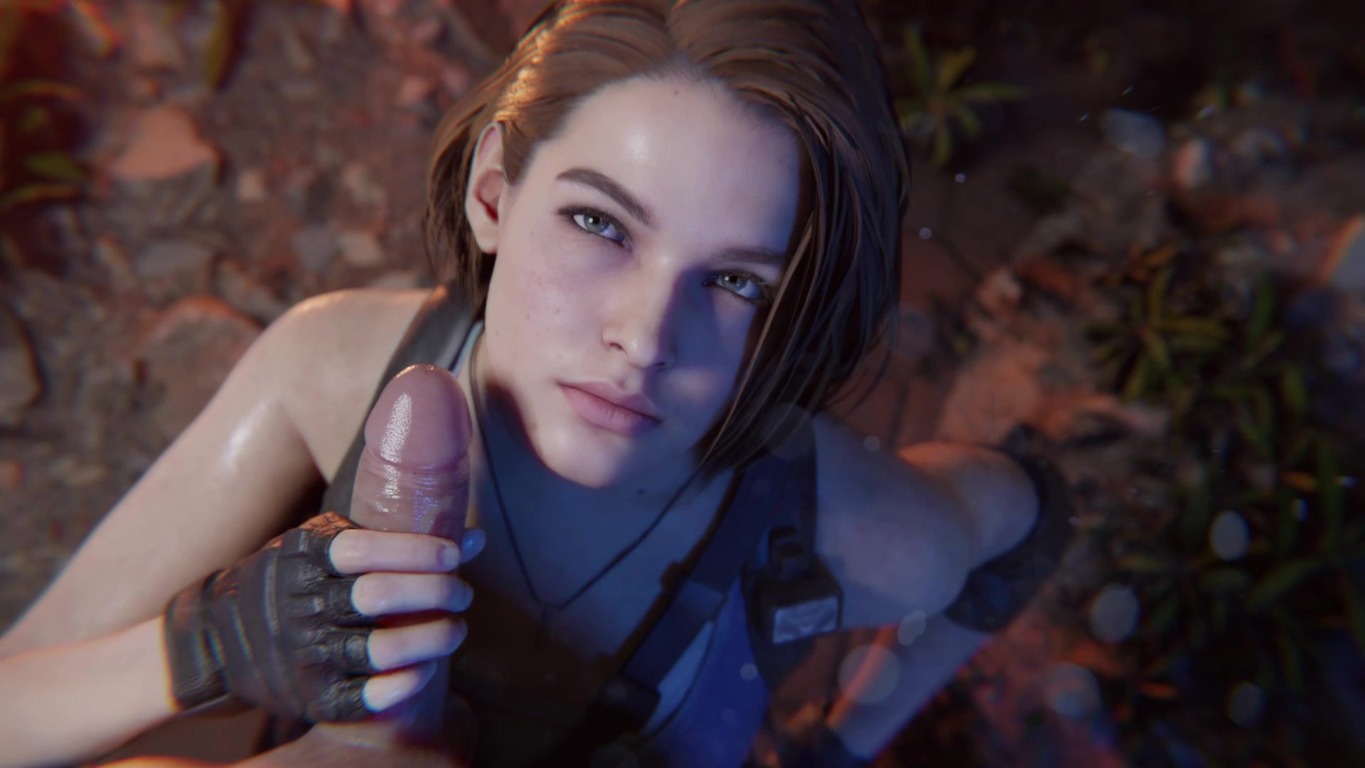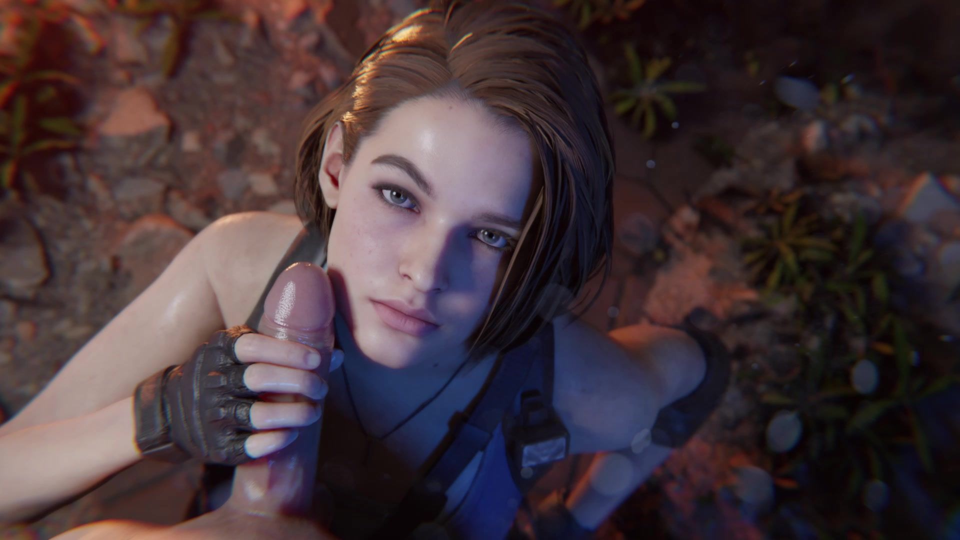 Jill Valentine wichst langsam den Schwanz ihres mutigen Kameraden