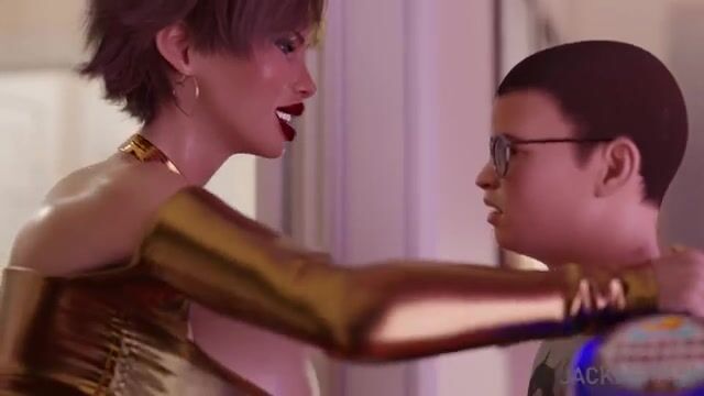 Aufgeregter Sohn fickt betrunkene Mutter mit riesigen Titten in 3D-Cartoon