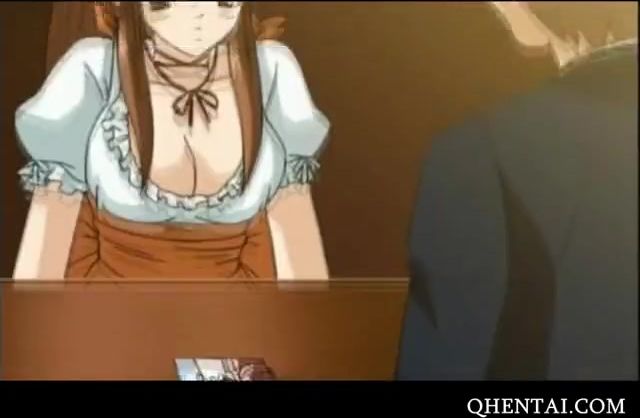 Anime hottie juguetes su coño mientras se la follan en el restaurante