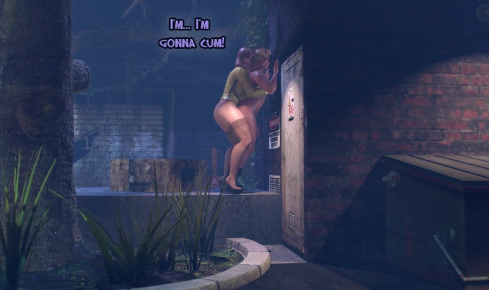 Le mari et la femme avec une bite de futanari se baisent dans la ruelle