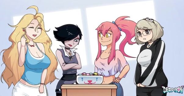 Quatre jolies copines se sont réunies et ont organisé une fête. Elles ont pensé à des concours pour la rendre moins ennuyeuse. Mais c'était ennuyeux. C'est devenu plus amusant quand un gros lapin monstrueux est apparu et a étiré leurs trous avec sa grosse bite.