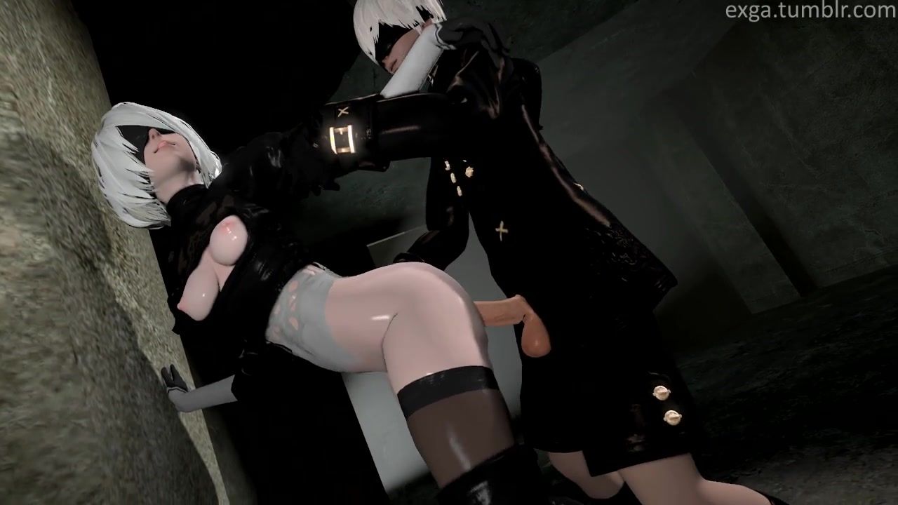 Angry uomo 9S dominante e ruvida cazzo 2B blondie outdoore