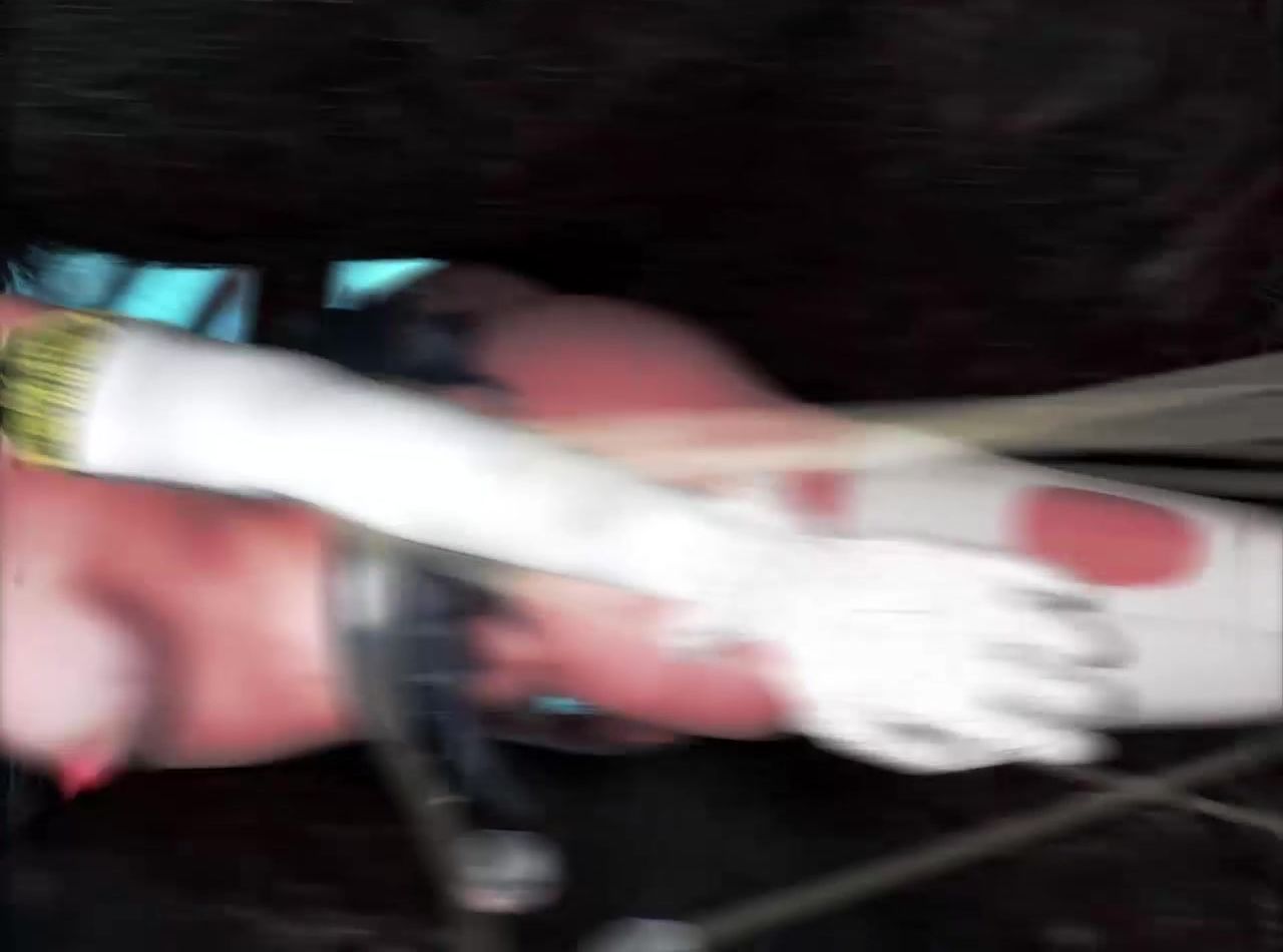 Grande futa slut in calze nere scopa una ragazza in un vicolo sporco scuro