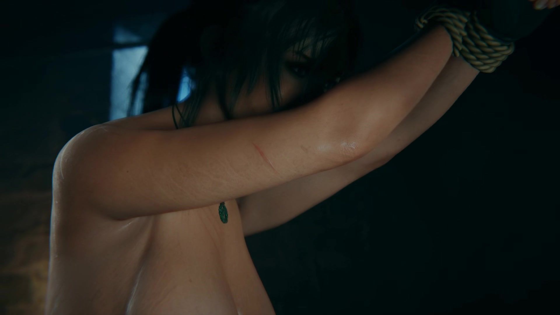 Máquina de sexo rápido fode amarrada Lara Croft na sua grande rata