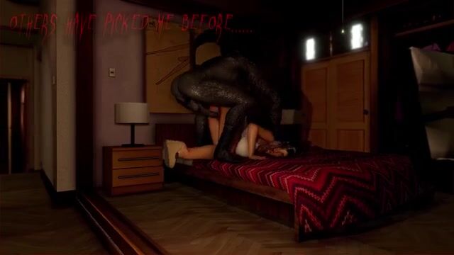 Сексуальная блондинка включила фильм ужасов по ТВ. В двери кто-то постучал, а когда она пошла проверить - на нее напал демон. Ужасный демон не стал убивать красотку с большими сиськами, а просто выебал ее на диване.