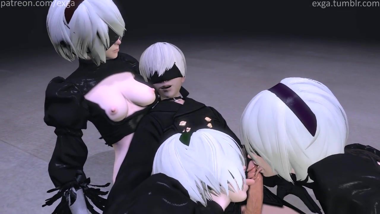 Klonlar 2B yakışıklı 9S ile Grup Seks düzenlenmiş