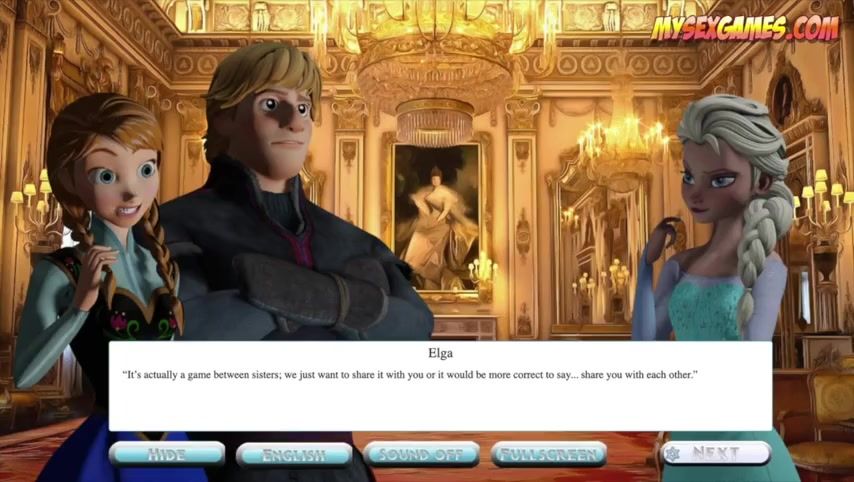 Surprised, Prince Kristoff watched the sisters Anna and Elsa having lesbian sex. They fucked for a long time with a long dildo, and then dragged a guy into it and arranged a threesome.
