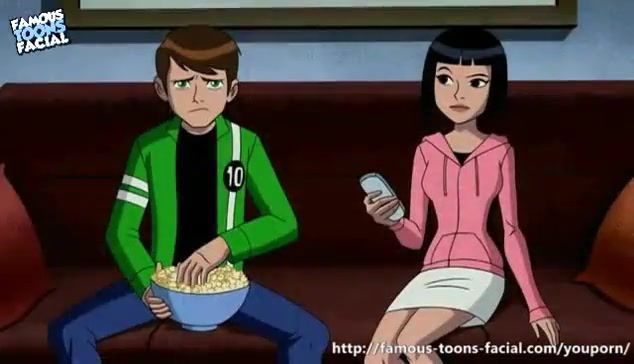 After Ben 10 once again saved his hometown, and maybe even the whole world, he relaxed at home in front of the TV. A busty girlfriend was sitting next to her, so the guy gave her his penis to suck and fucked her on the couch.