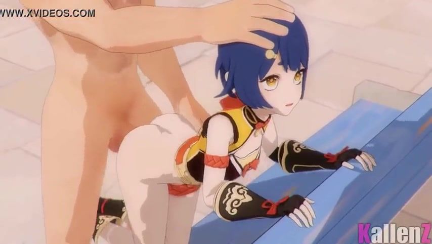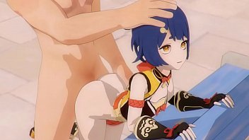 The blue-haired girl Xiangling from Genshin Impact became a slave and now obeys a man in sex. This time he preferred to arrange a cartoon doggystyle bitch sex with deep penetration into the hole.