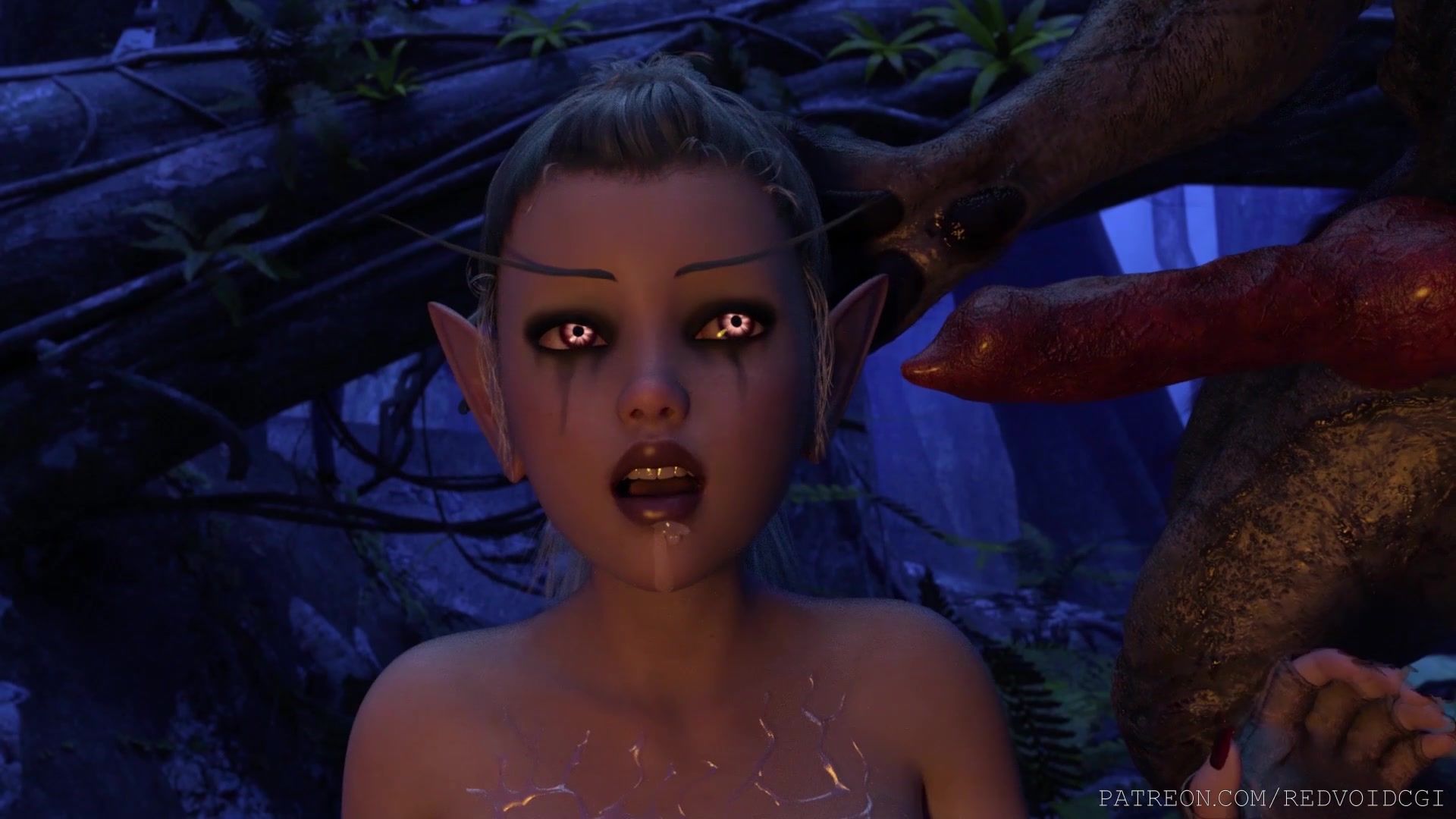 A young woodland elf is planted with her wet pussy on a big 3D monster dick in an animated porno. The beauty jumps on a huge penis and gets a huge amount of cum inside. The cum puffed up her belly, now the bitch is pregnant and she has to give birth.