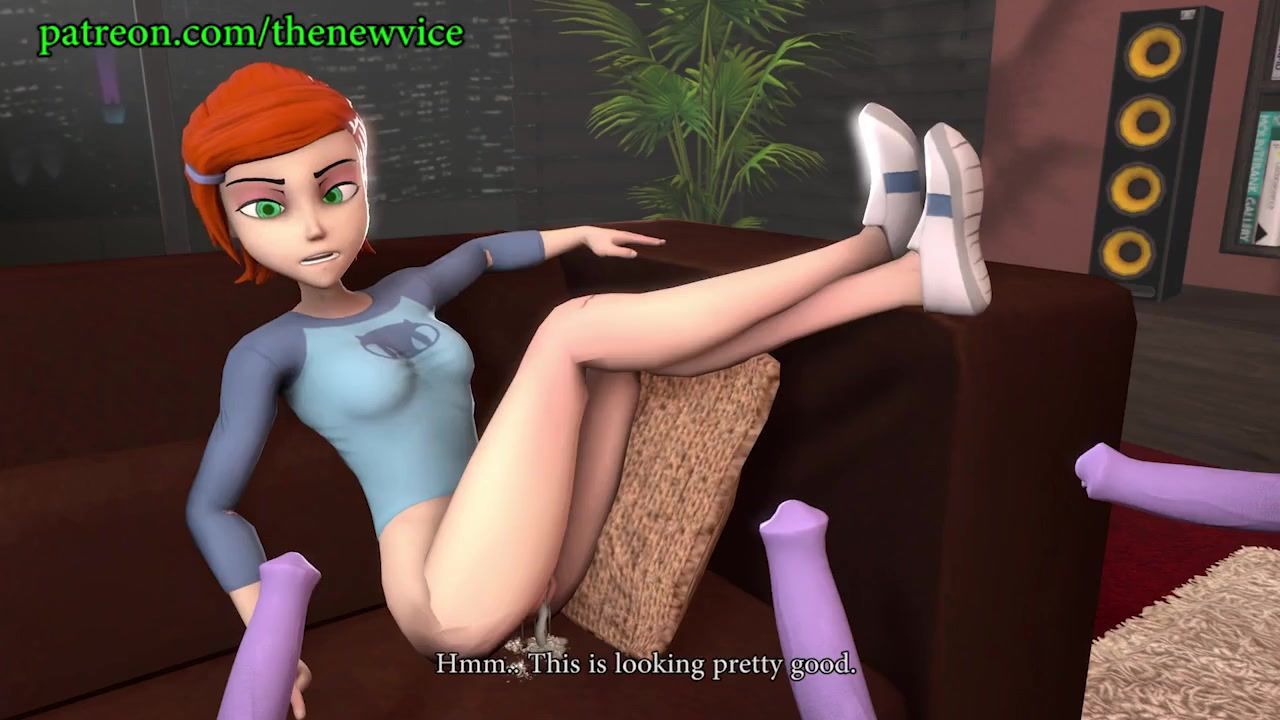This 3d porn video features Gwen Tennyson, the redheaded teenage heroine from the cartoon series, getting a wild intergalactic experience. A group of aliens have taken her captive and decide to give her the ultimate pleasure as they take turns ravaging her in a hardcore session of double penetration. Gwen is made to suck and deep throat their big cocks before they fuck her tight pussy and anus in turns, making her moan with pleasure. With a couch as the perfect prop, they make her cum in waves before finally delivering a messy creampie. The aliens don't stop there and finish off the session with a group cum shot all over her body.