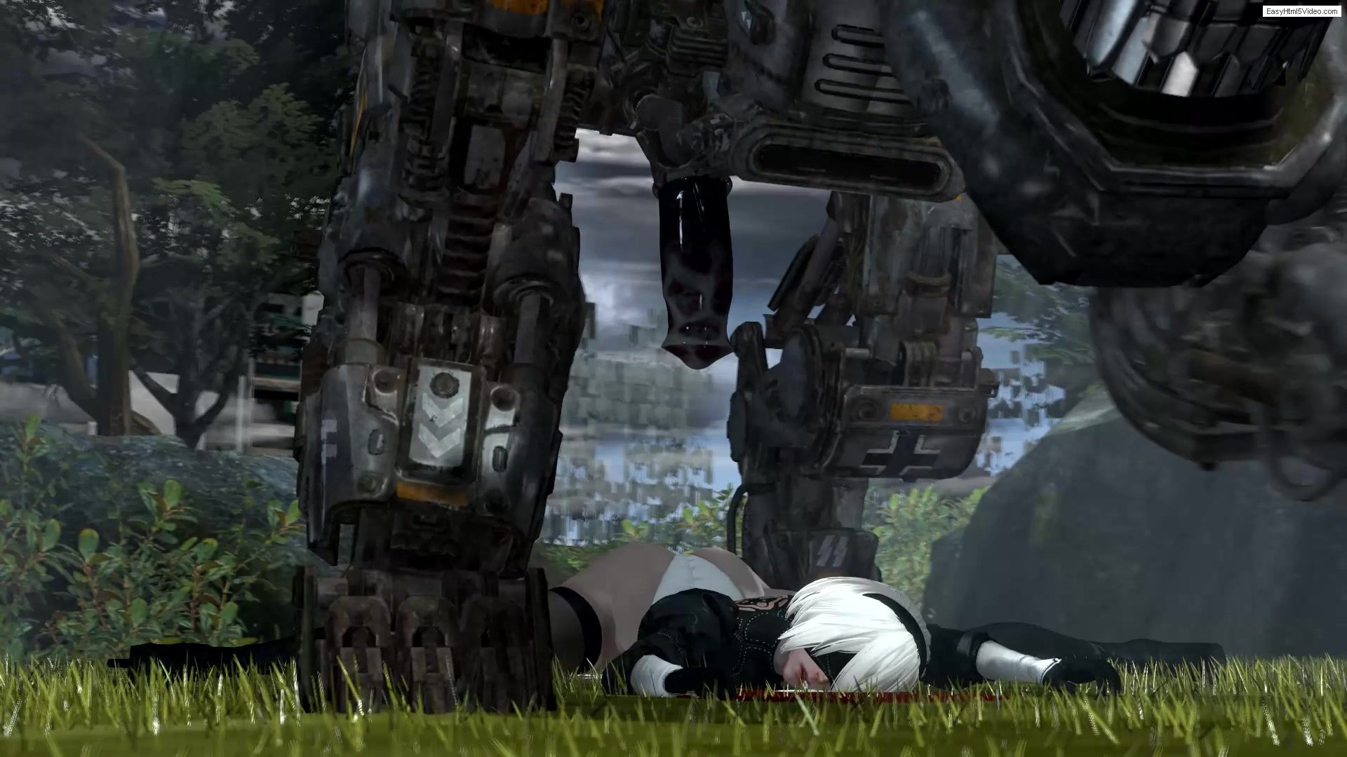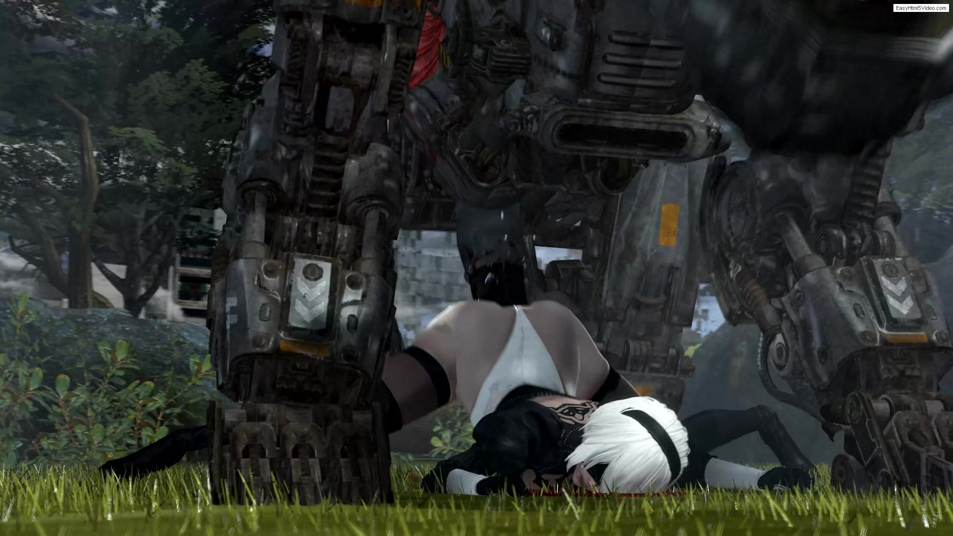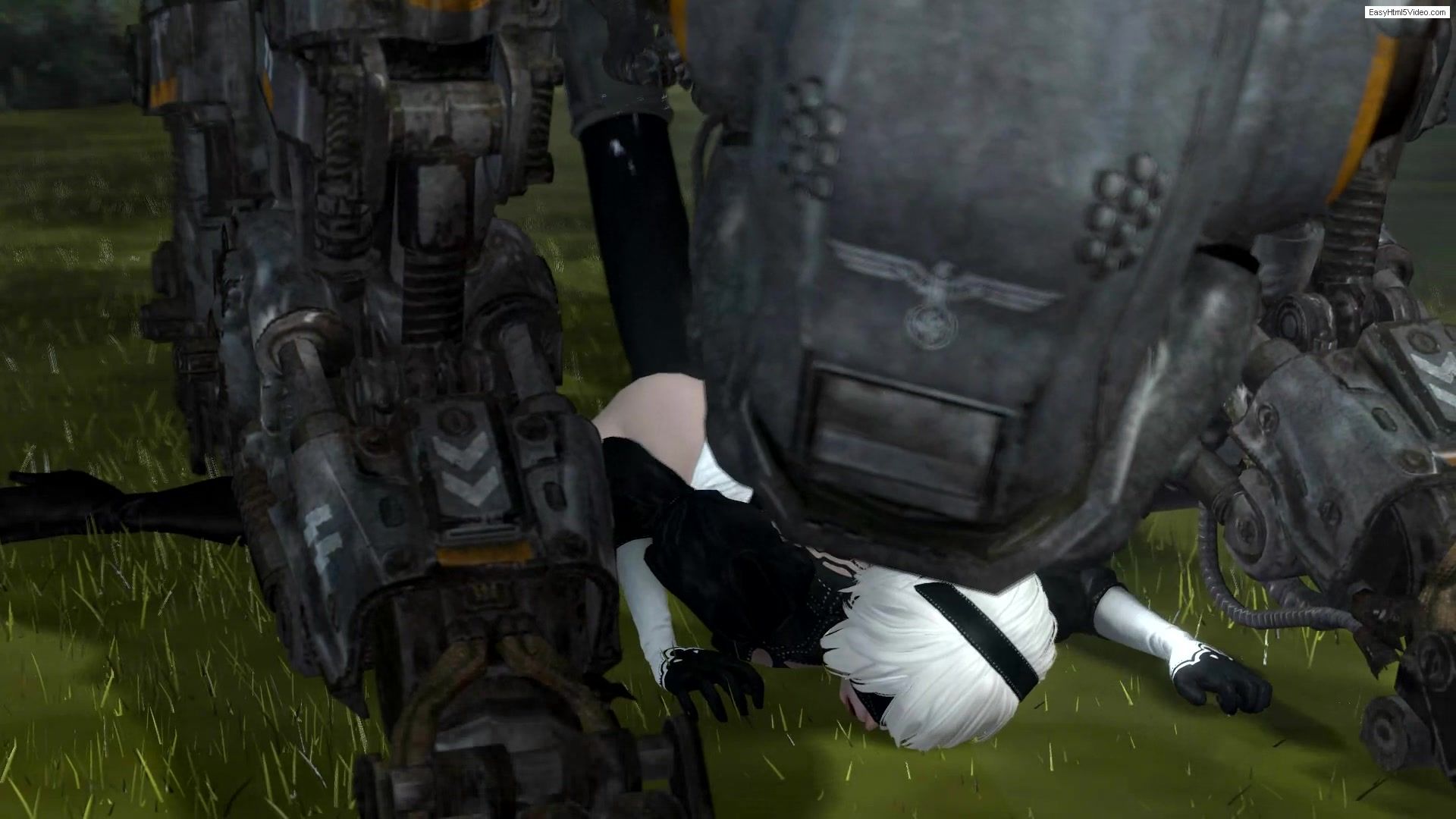 The young blonde YoRHa could not resist the huge robot and was anally raped by its big cock. The monster's penis ruthlessly penetrated the defenseless girl's ass and did its dirty work there. Poor bitch YoRHa, no one can help her!