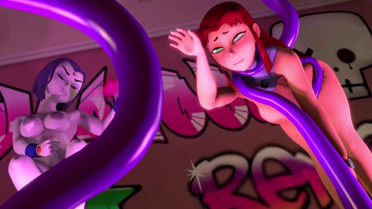 Animated girls Gwen Tennyson and Raven from the cartoon Teen Titans find themselves gripped by long tentacles. The monster's tentacles bind the futanari bitches, penetrating deep into their asses. The beauties can't resist anal sex, moaning and enduring the perversion.