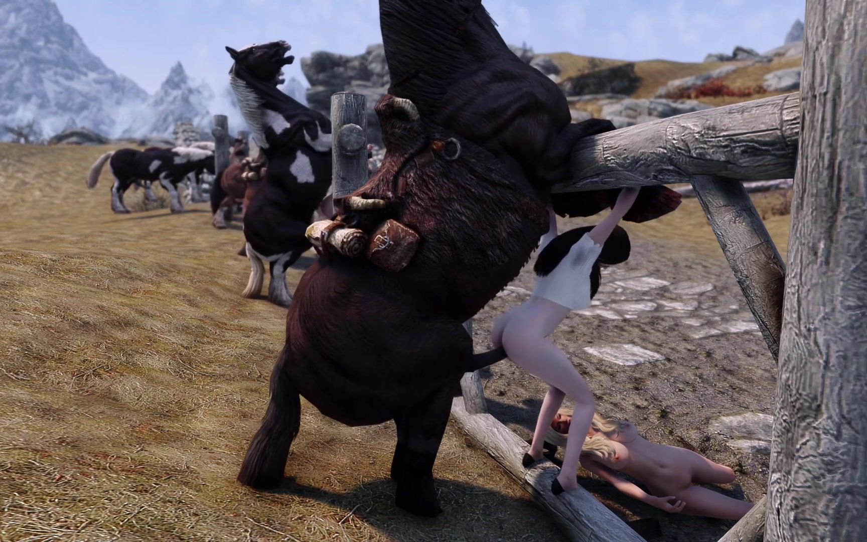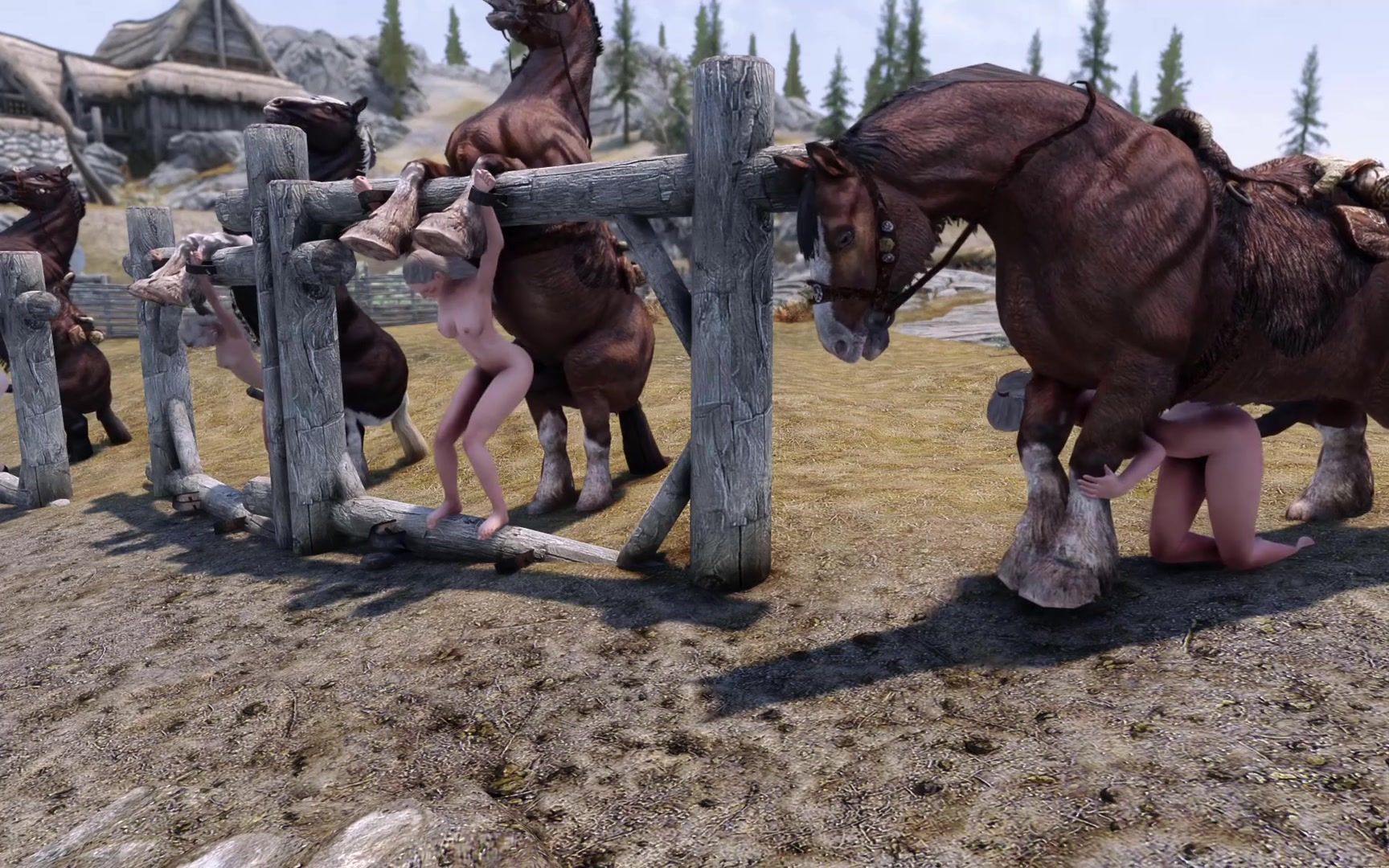 What you don't see in cartoon porn. Today you'll be lucky enough to enjoy an unusual ranch orgy. Thoroughbred studs rape defenseless girls, thrusting their big penises into tight pussies. The bitches can't resist and are forced to suffer dirty fucking.