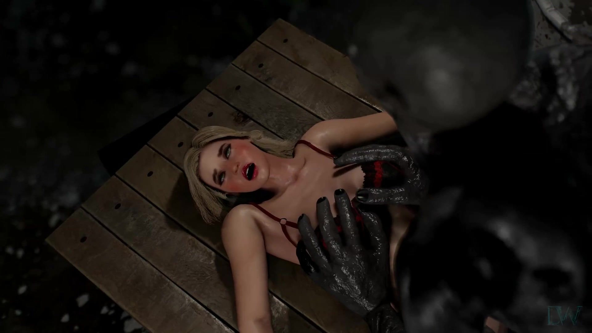 A glamorous blonde tries to escape the apocalypse and finds herself in the clutches of a vicious monster. The monster knows no mercy. It wants to rape the beautiful girl in seductive stockings. The monster's big, smelly cock penetrates her clean pussy and infects her with the virus.