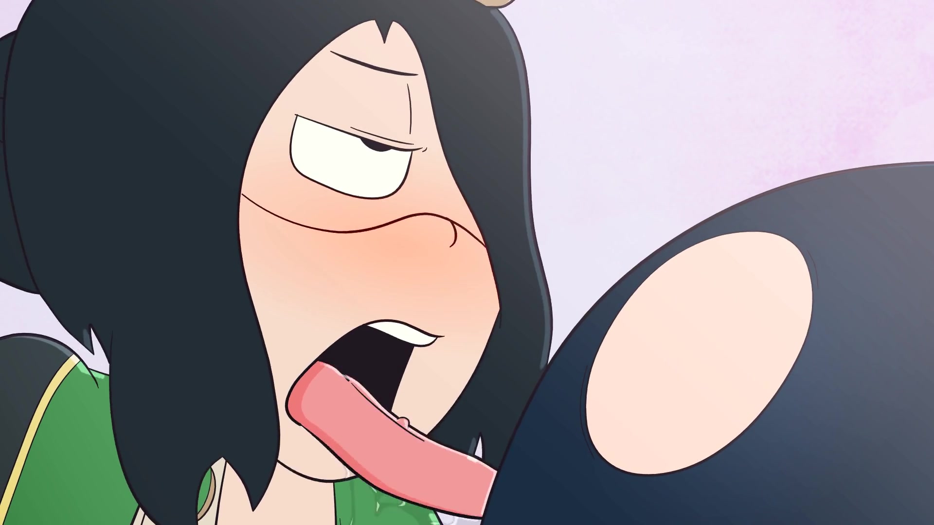 Didn't you know that Tsuyu Asui from the cartoon My Hero Academia is a real lesbian? Today the bitch got horny looking at her seductive friend and decided to lick her pussy. As soon as the girl bent over with her forehead, the bitch penetrated her wet hole with her tongue and started licking there. Amazing cunnilingus!