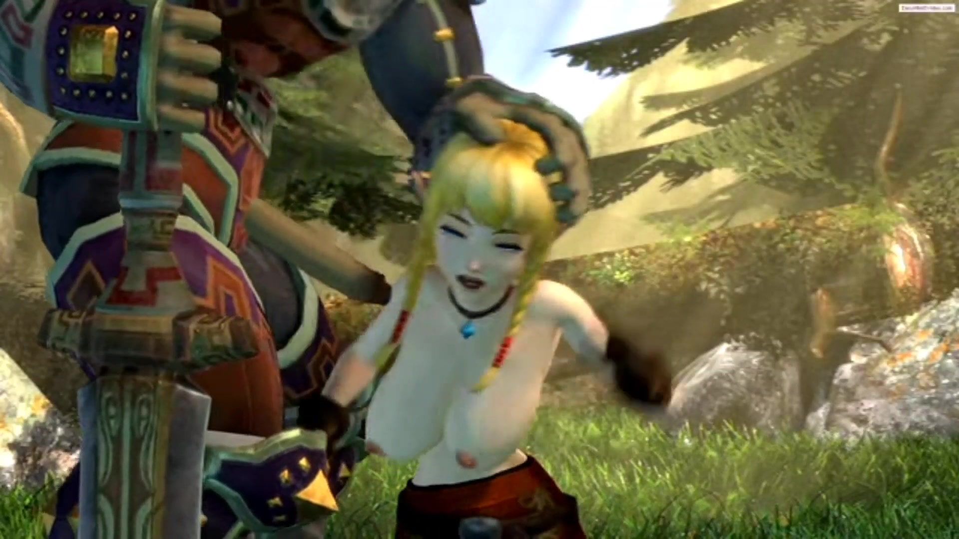 The evil warrior in armor knows no mercy and today intends to arrange a bloody rape of a young elf girl. The girl is on her knees and gets a big cock in her ear, which subsequently kills her. The warrior with the sword continues to fuck the dead girl until his penis cum in her head.
