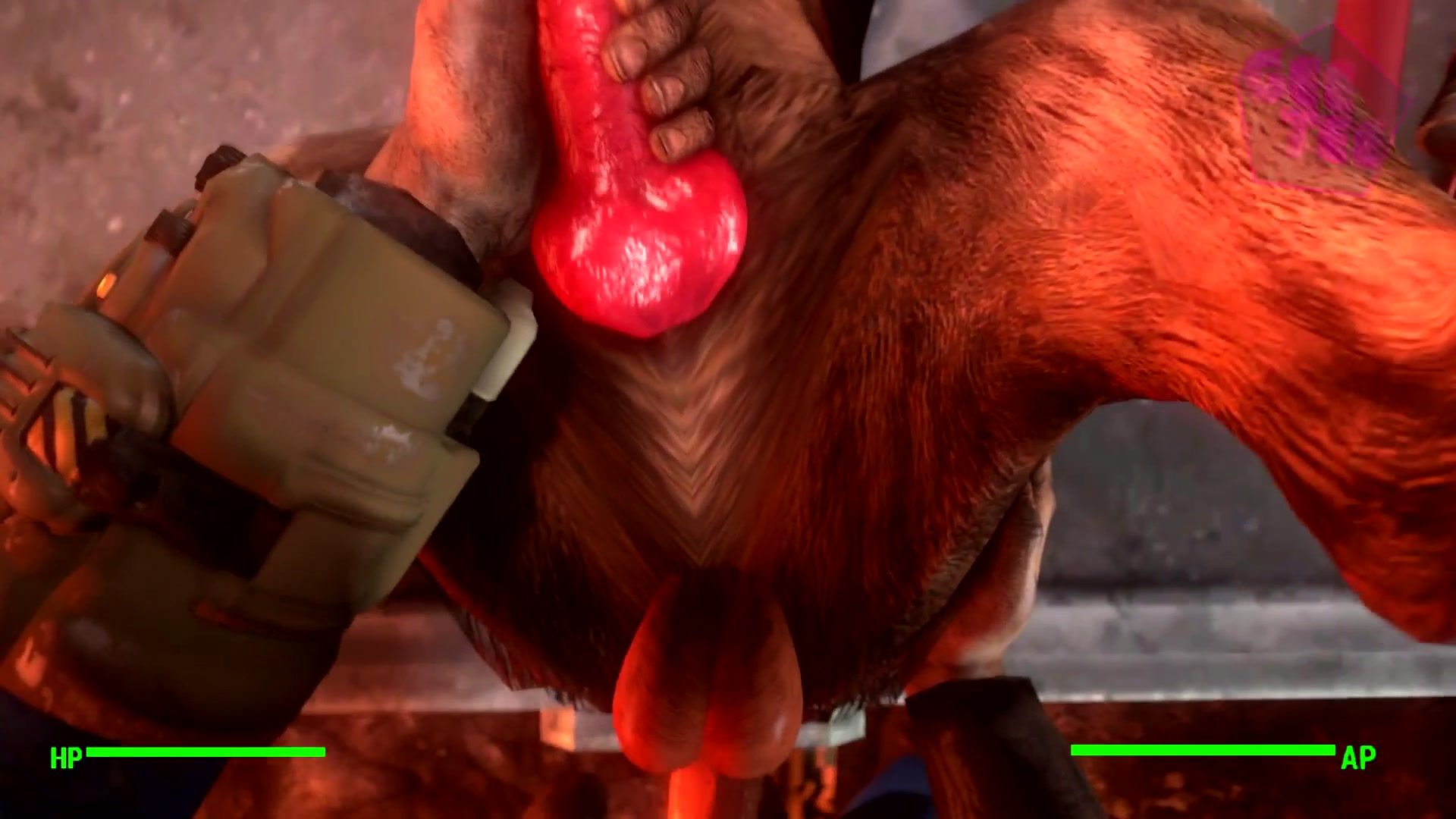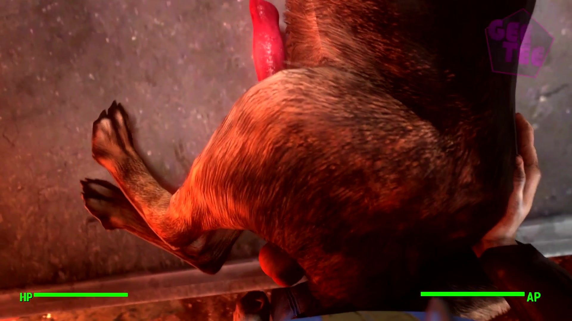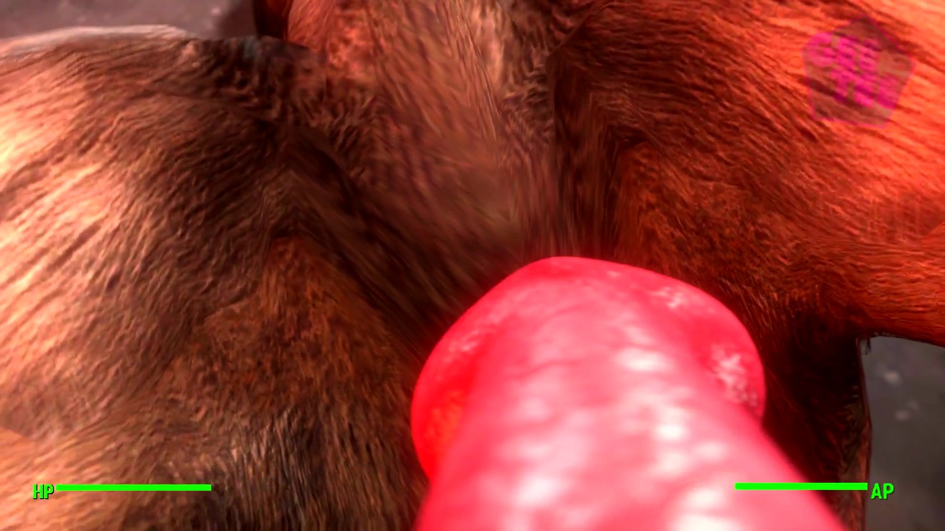 Huge human 3D cock drills dog's ass