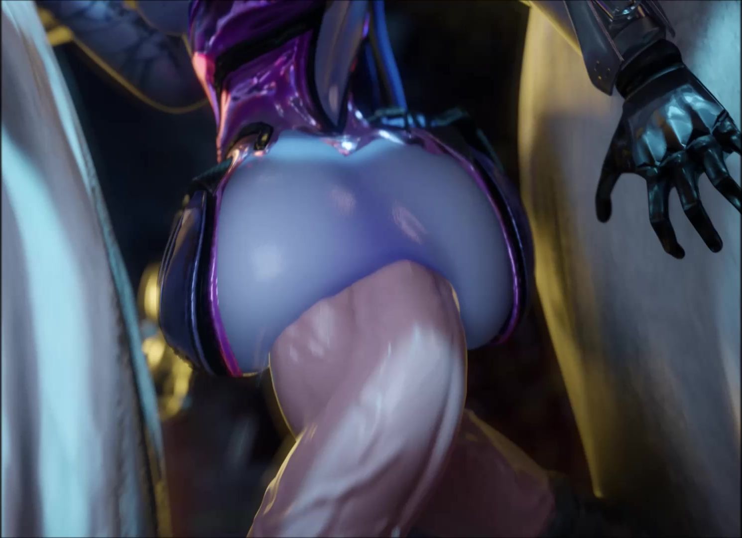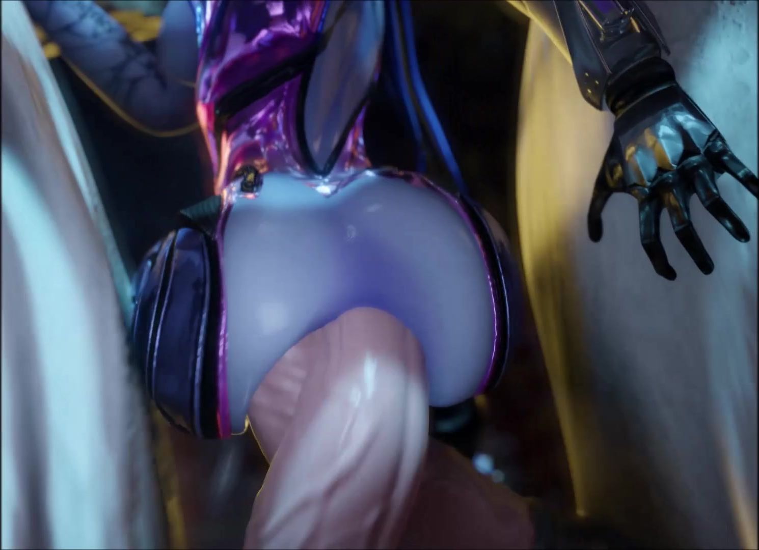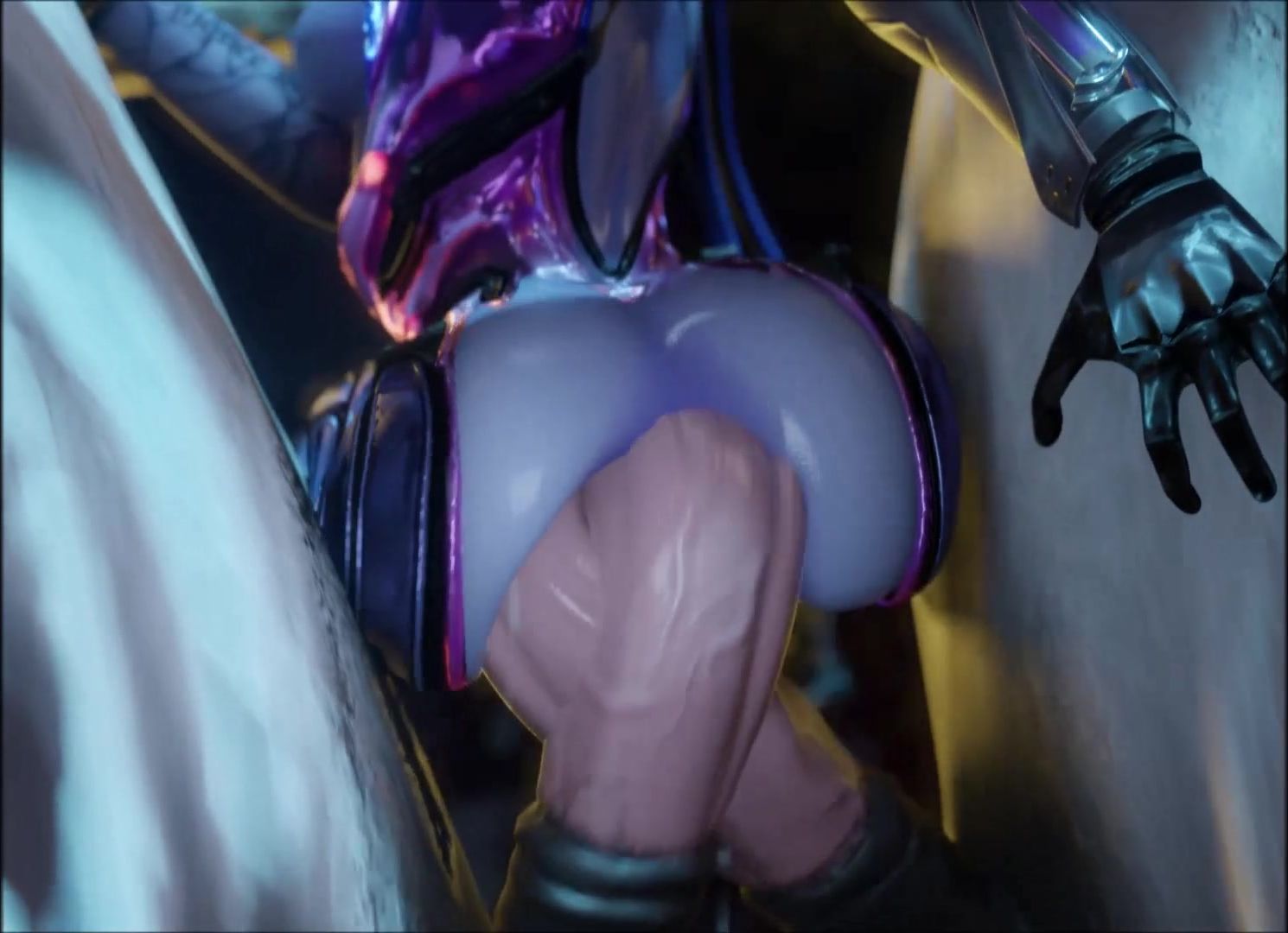 Widowmaker enjoys double anal penetration with 2 horses