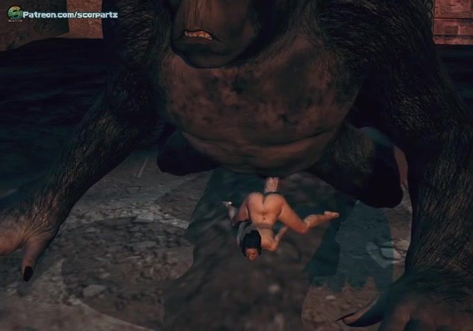 A miniature 3D chick got caught by two huge goblins. She tried to escape, but she was grabbed by a dragon and a gorilla and fucked hard with huge dicks. The chick twisted and screamed like a dirty whore as her wet holes were torn apart by two giant goblin cocks.