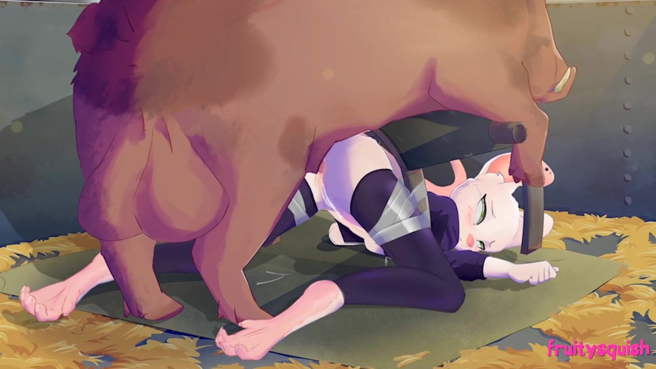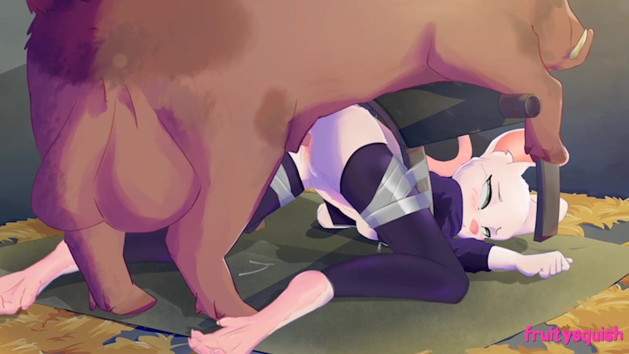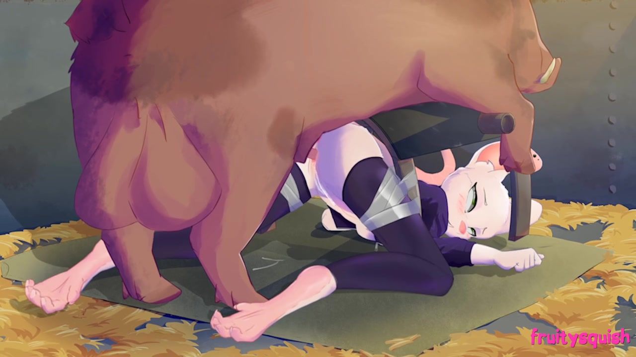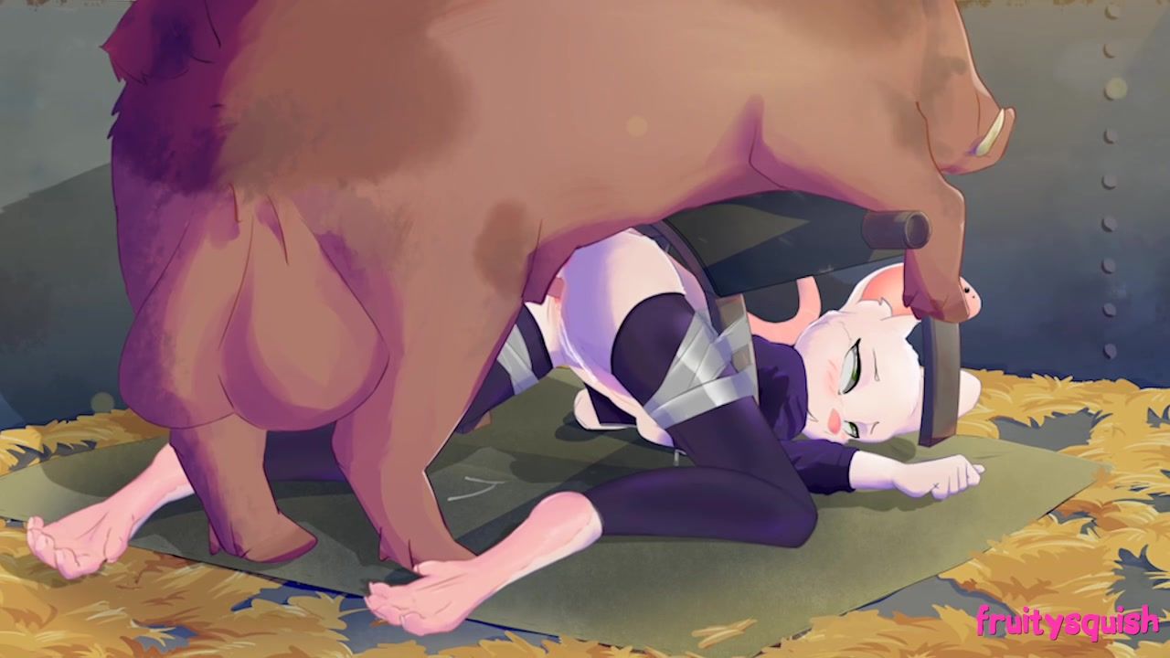 A boar with big balls, when he saw a pretty cat girl in the barn, got horny and pounced on her from behind. Well the cute cat girl, when she realized she couldn't escape, relaxed and fucked in her cunt with the wild boar. She let the pig fuck her pussy while she stood on all fours on the floor.