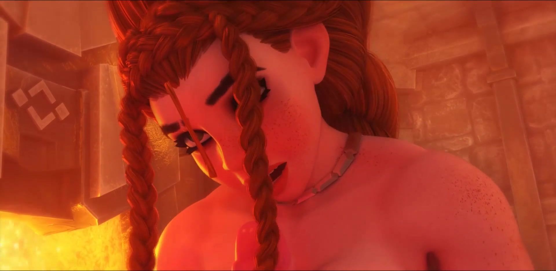 A busty 3D girl with red hair, seeing a devilish trapdoor in front of her, engaged his big cock. The redhead with her massive tits fucks the guy's cock, which she licks and sucks. She gives a cool hot blowjob and gets cum in her working mouth for it.
