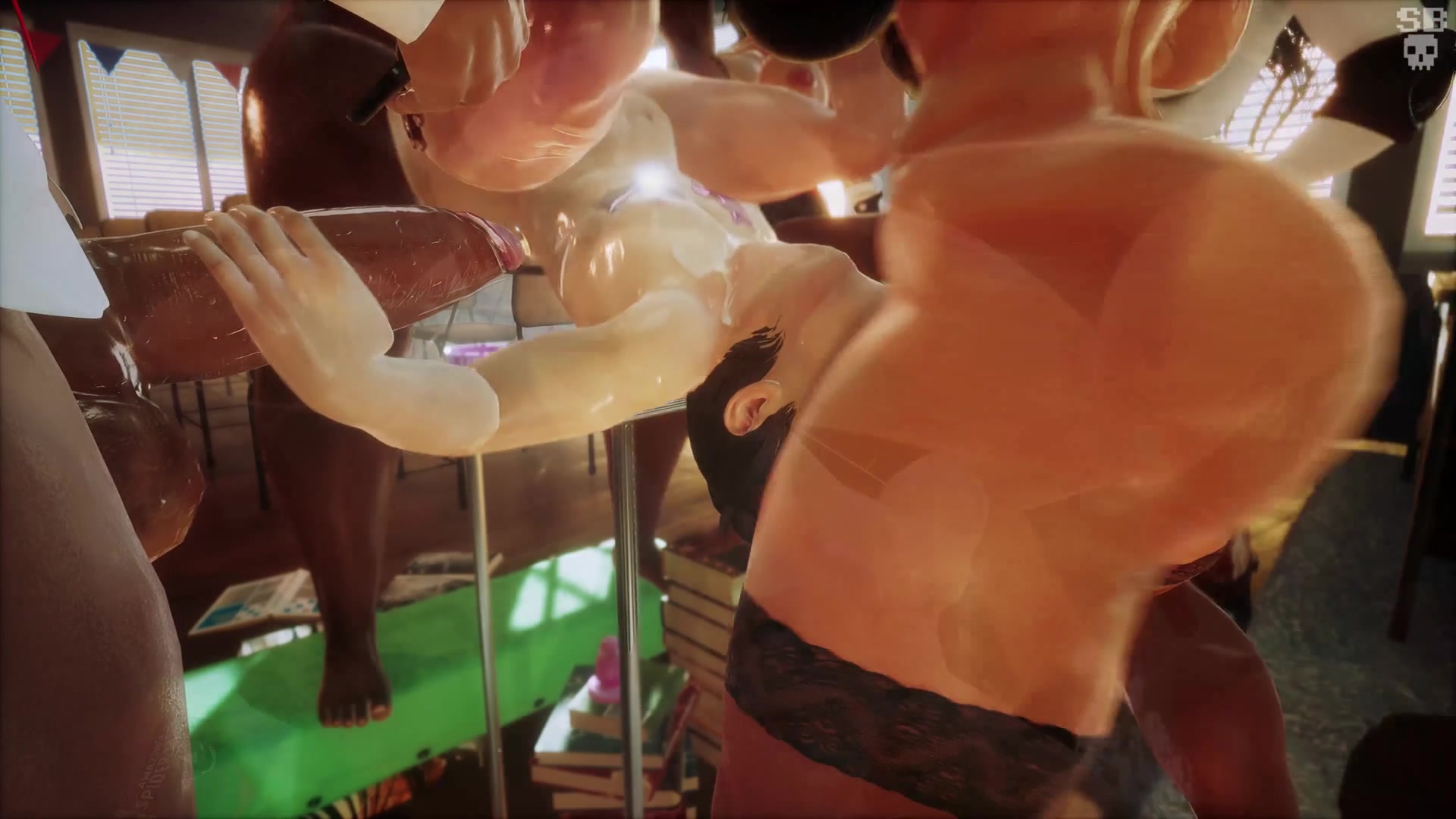 Black futanarians with big dicks love to fuck. And when they saw the young futa, they had hard group sex. And to keep the young bitch from screaming, they put a rubber gag in her mouth. And after futanari arranged double penetration and roughly fucked her in the anus with long dicks.