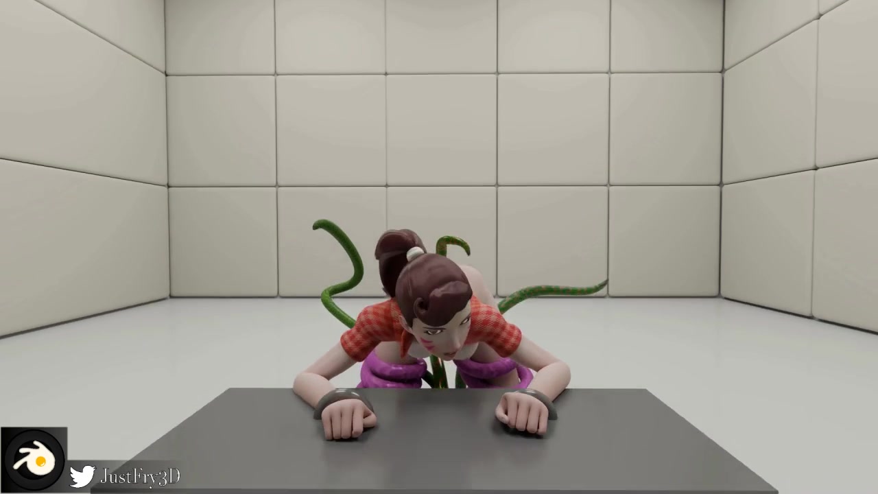 A young D.Va from Overwatch was in an isolated room when long tentacles appeared from a hole in the floor. Before she could react, the tentacles choked her. D.Va tried to free herself, but the tentacles choked her and fucked her in all her holes.