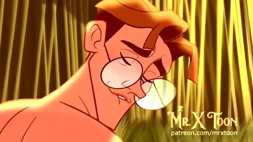 Disney porn cartoon where muscular Tarzan fucks an archaeologist with glasses. Tarzan wanted sex so badly that he got to fuck the man. He got him to give him a deep blow job, and when the man wetted his dick, Tarzan took it and fucked him in his tight ass with his thick dick.