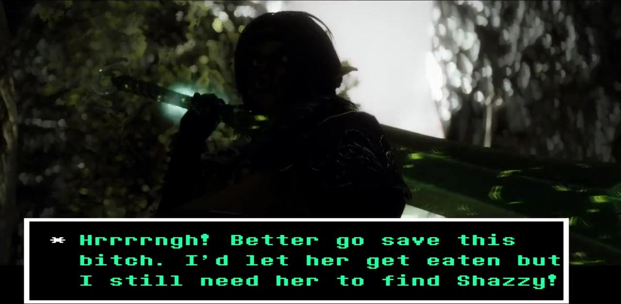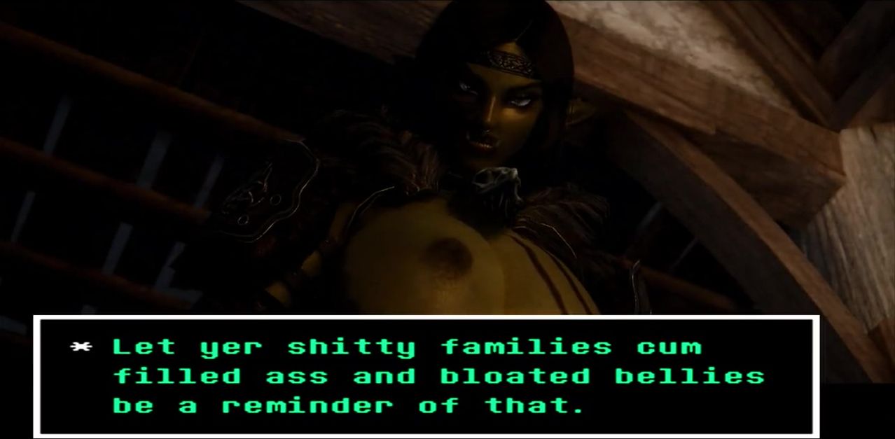 MissyB from the game Skyrim finds herself in a sticky situation when a huge futanari cock appears and grabs her from behind. She struggles to escape, but her efforts are in vain as the futanari pins her down and ravishes her with its giant cock. She screams in pleasure and pain as it thrusts deep into her tight pussy, pounding her relentlessly in every position imaginable. The futanari's huge cock fills her up completely, making her moan with pleasure as it ravages her body. MissyB is left completely spent by the end of the night, but she will never forget the intense pleasure her captor gave her.