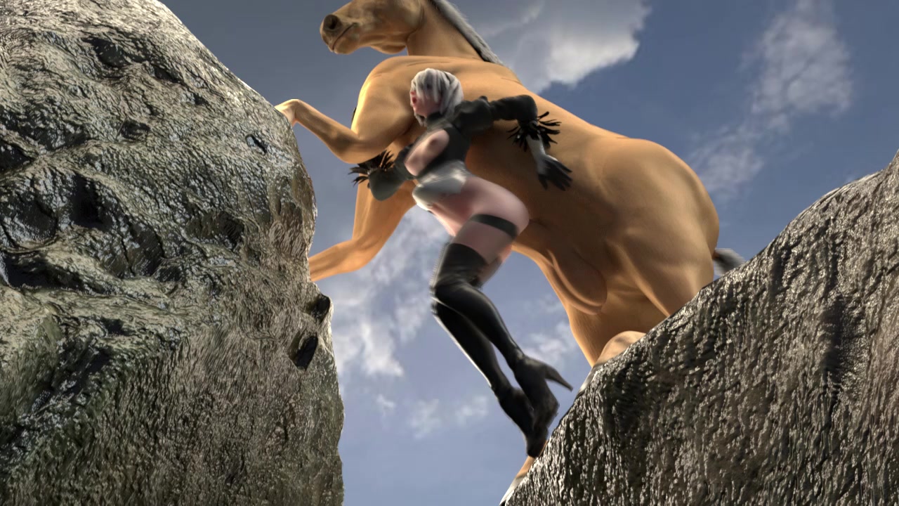 2B gets her ass demolished by horse while stuck in air