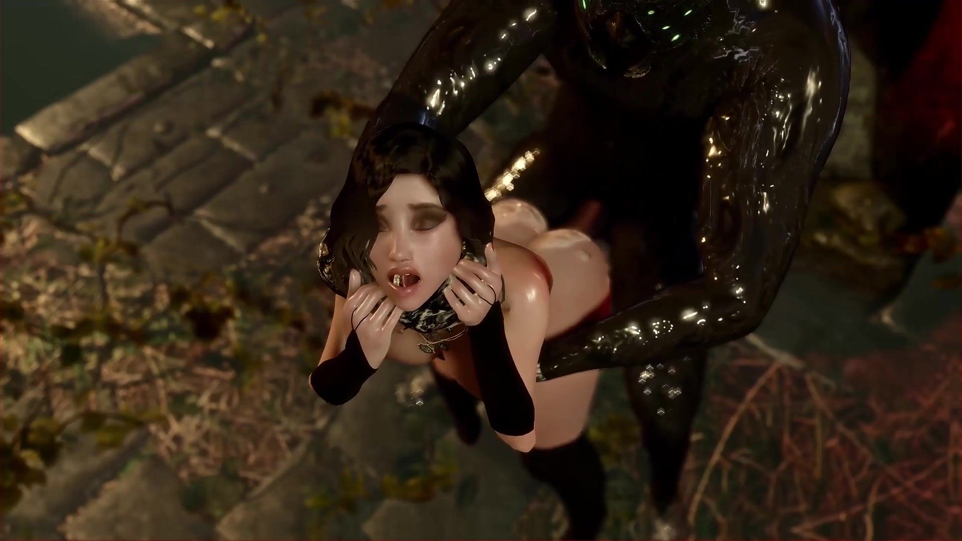 A titty whore went down into a dungeon and met a horrible monster. She wanted to escape, but it was too late. The nimble demon caught the girl and put her on his long hard dick. Enjoying her screams, the monster fucked the busty chick hard and gave her a creampie.