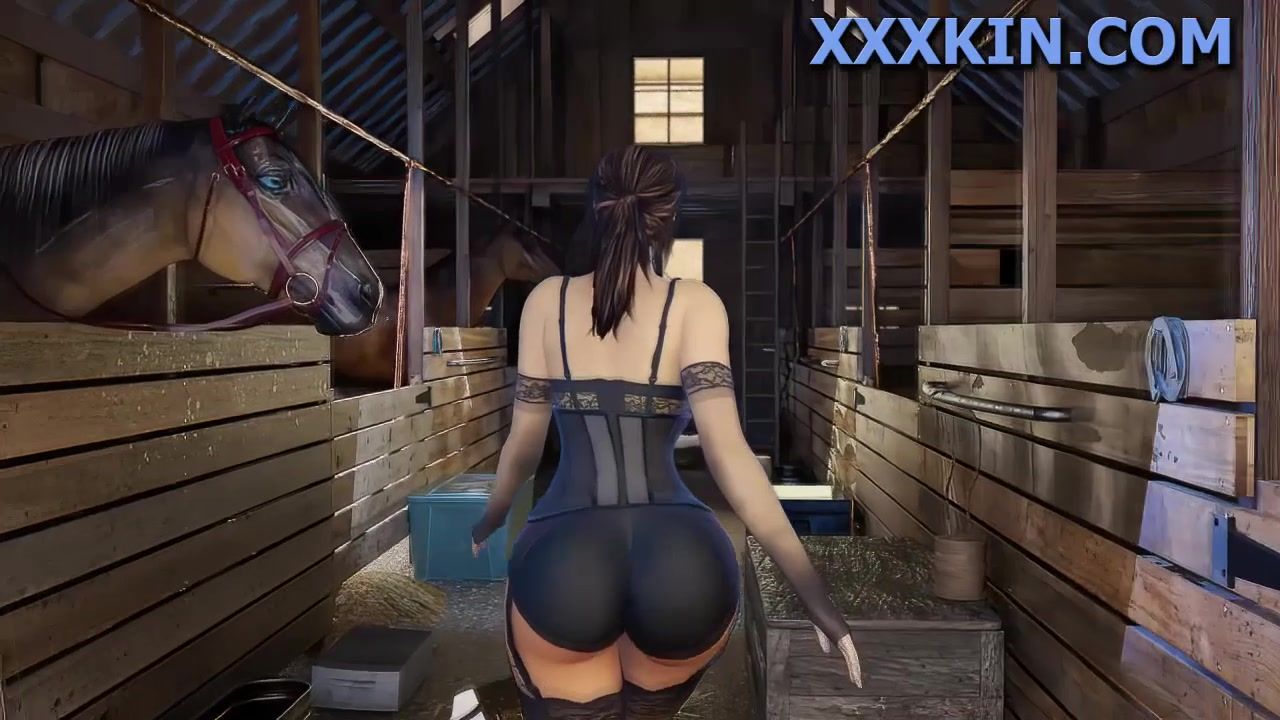 A horse's cock fills a masked girl with sperm! 3D porn with bestiality