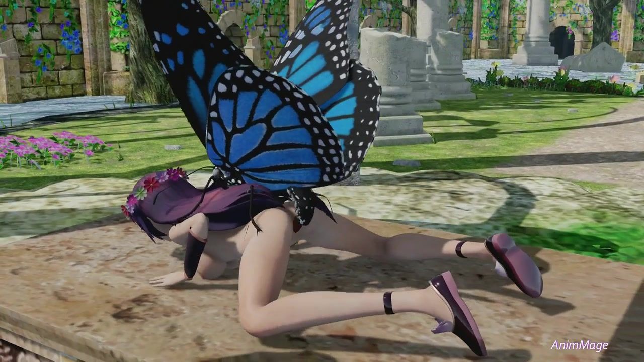 A huge beautiful butterfly flew behind the pretty busty girl and spied her. She watched the pretty girl do a striptease and her proboscis strained. Shoving it into the wet pussy of a brunette with big tits, the giant butterfly fucked her just outside.