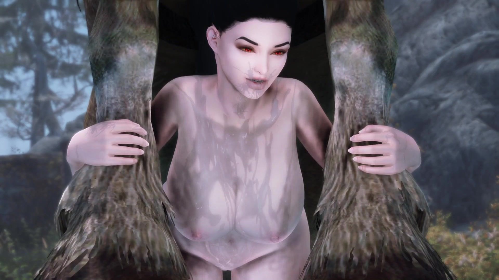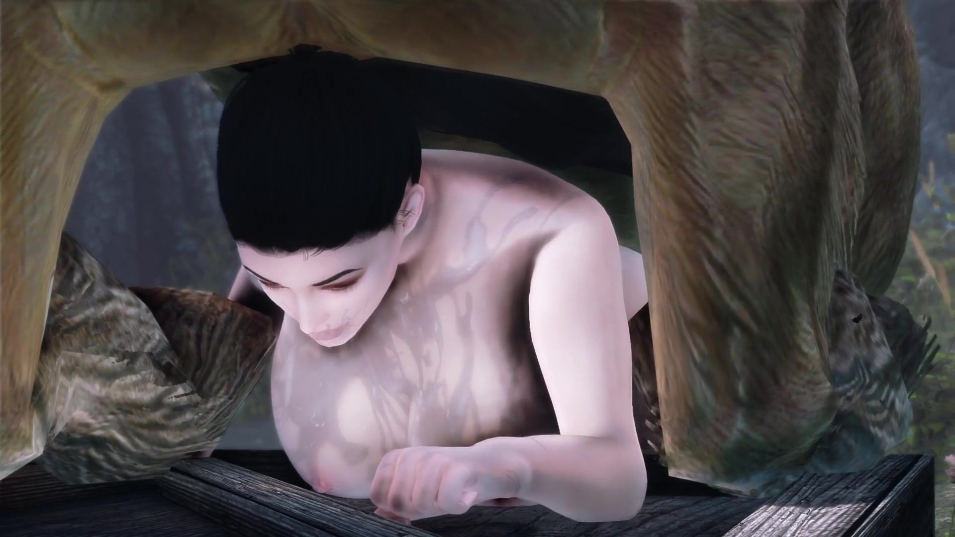 Hot brunette with big natural tits and ass Minerva from the multiplayer game Skyrim washed under the waterfall. The horse was watching her and his cock was getting more and more excited. Seeing the horse's huge cock made Minerva's lube leak between her legs - she wanted animal sex.