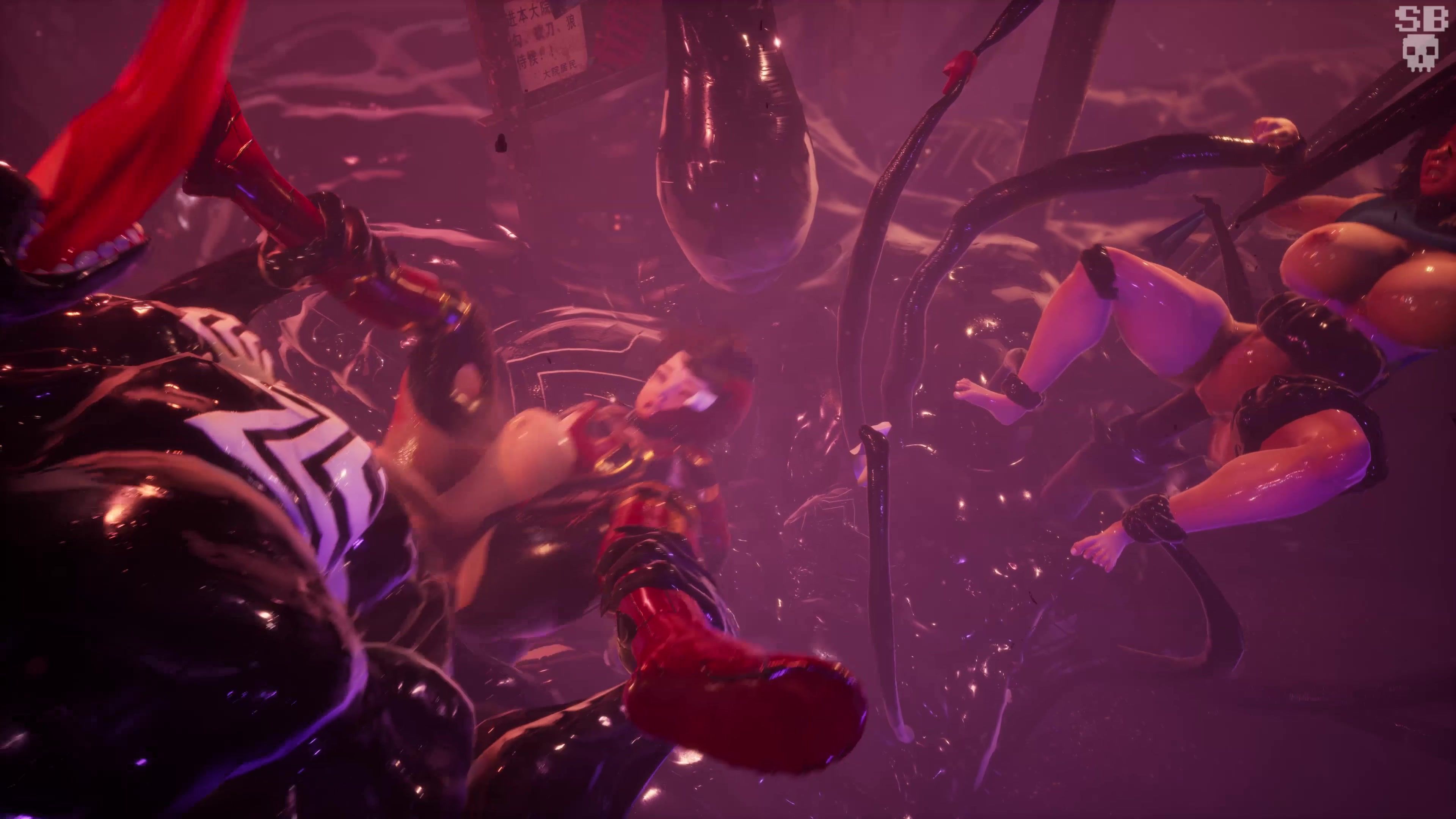 The horrible monster Venom grabbed the busty sexy girl and ripped her panties off. Before she could even squeak, the big black cock penetrated her pussy. The penis moved fast and deep, making the titty scream and ask for help all the time.