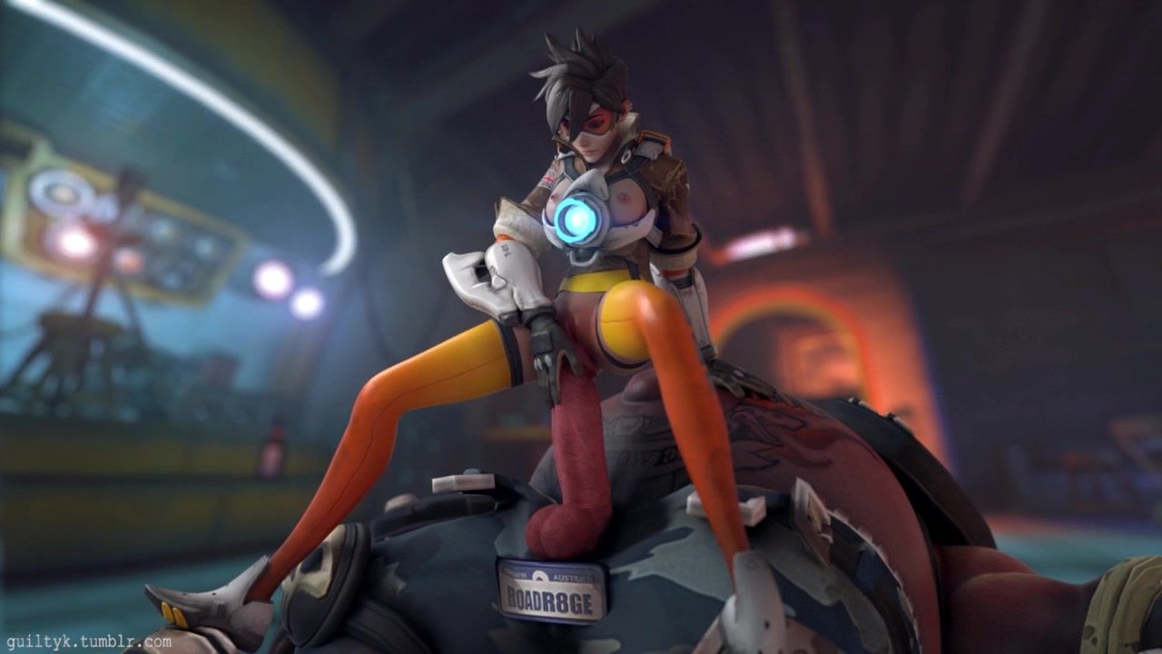 Hot young girl Tracer from the multiplayer game Overwatch dumbfounded when she saw the giant penis of her sleeping enemy. She forgot about everything and decided to test the penis on her pussy. Tracer sat on the dildo and felt like a real horsewoman.