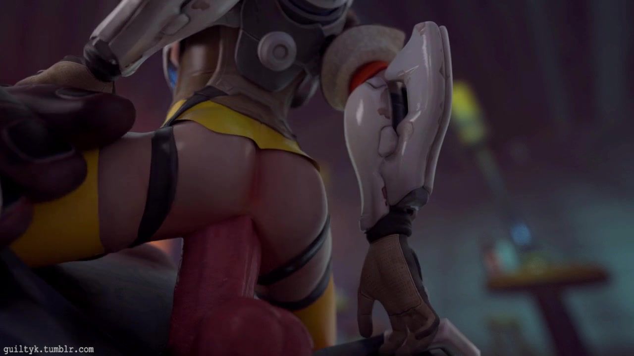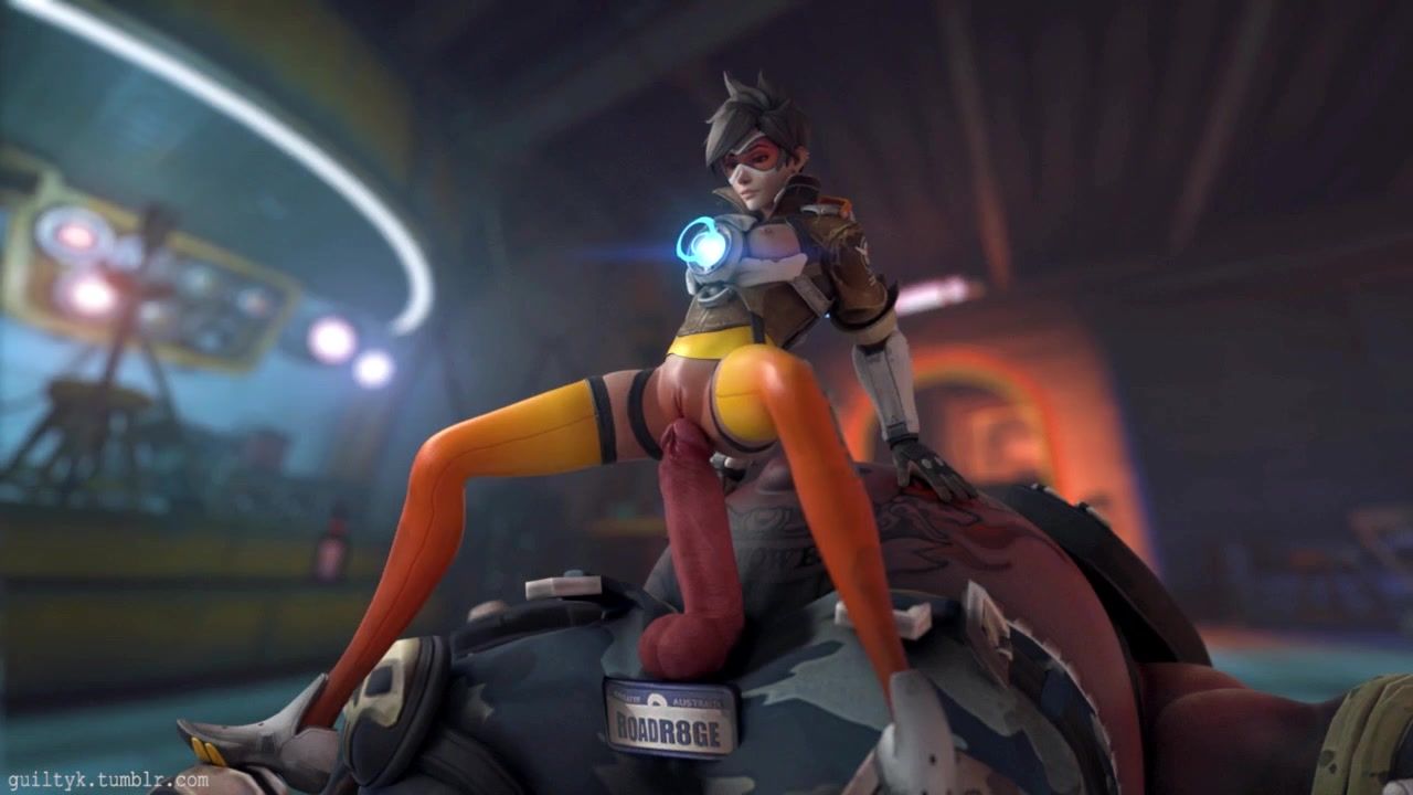 Tracer impales her 3D cunt on gigantic cock
