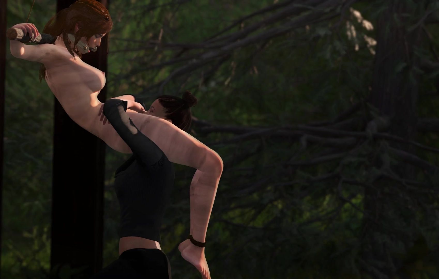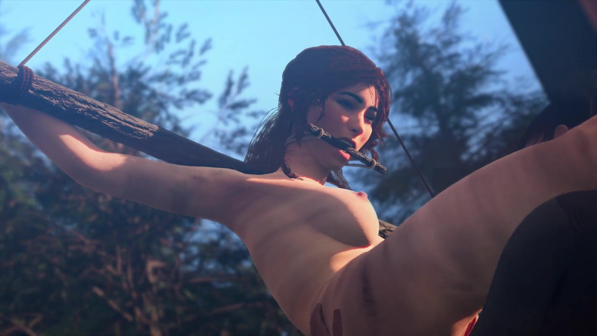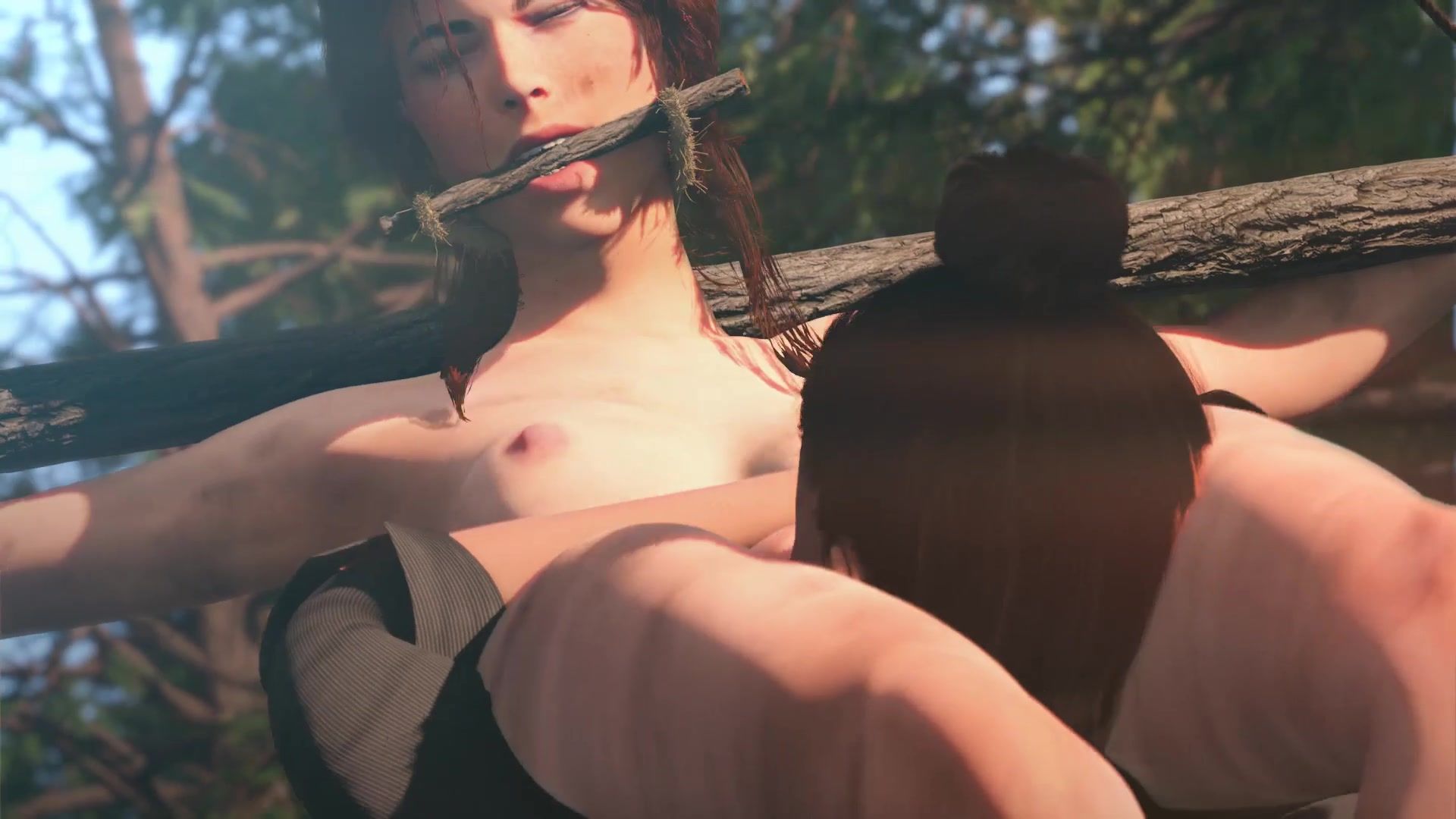 The warlike little girl Lara Croft from the cool game Tomb Raider was captured by her inveterate rival. The girl didn't take the trouble to strip her and tie her up with ropes. When Lara thought she was finished, the hot lesbian nestled between her legs and gave her cunnilingus.
