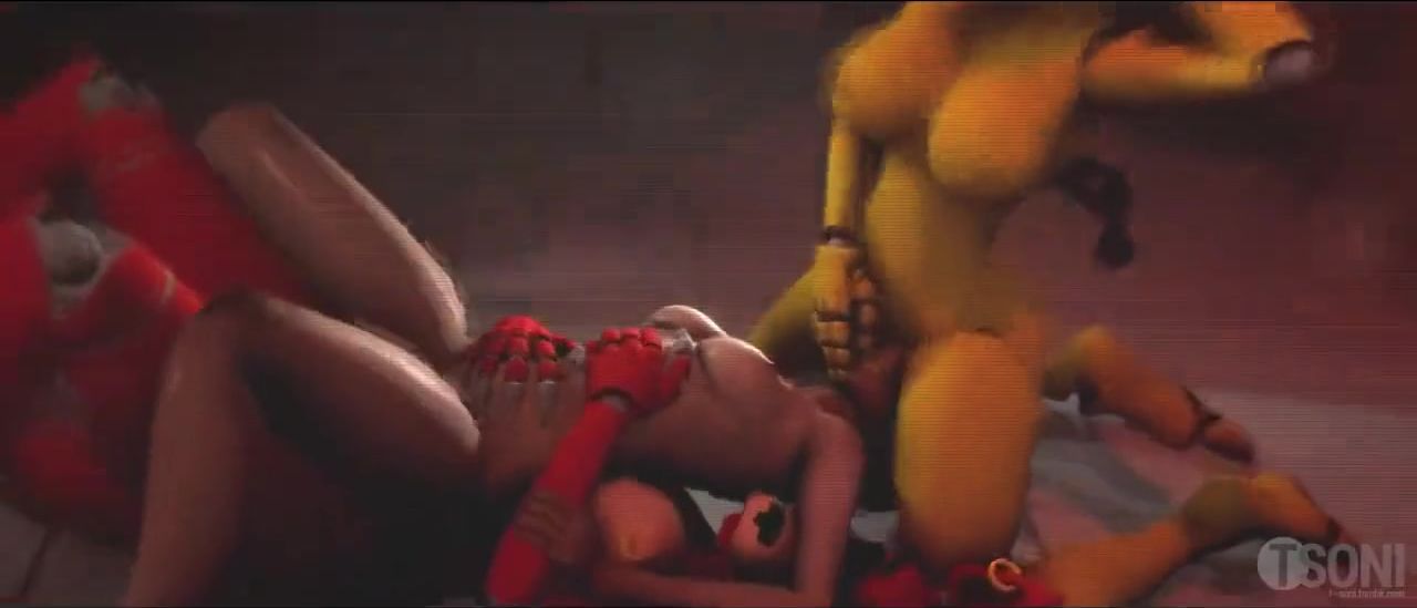 Ada Wong from the computer game Resident Evil went to rescue little Sherry Birkin. But she too was attacked by scary monsters who only wanted sex. These creatures came from the game Five Nights at Freddy's and not only scared the girls, but also fucked them.