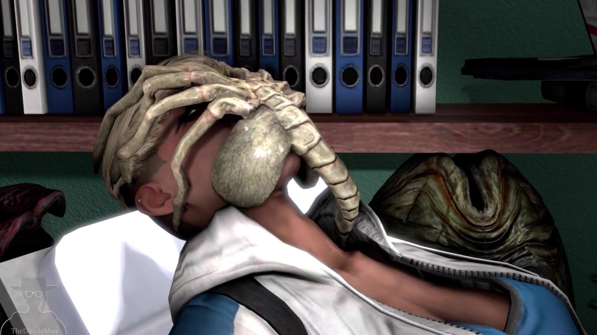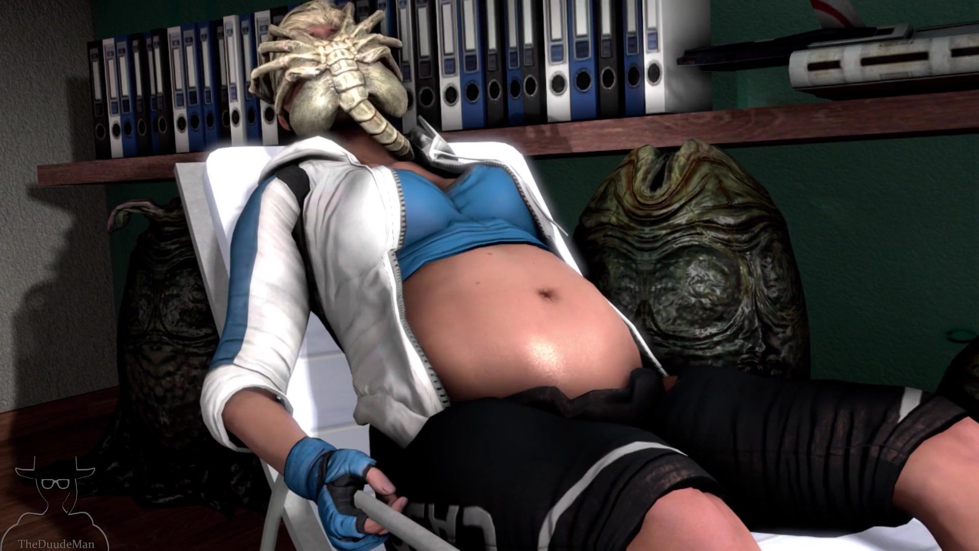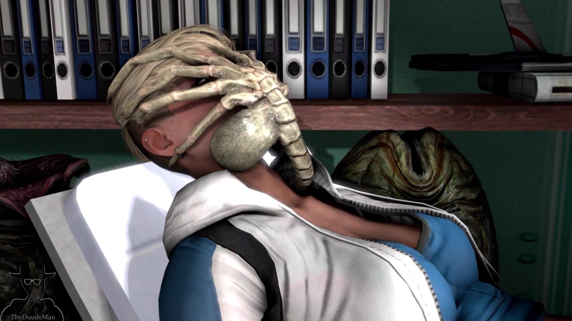 Cute 3D chick takes Facehugger's cum until her belly inflates