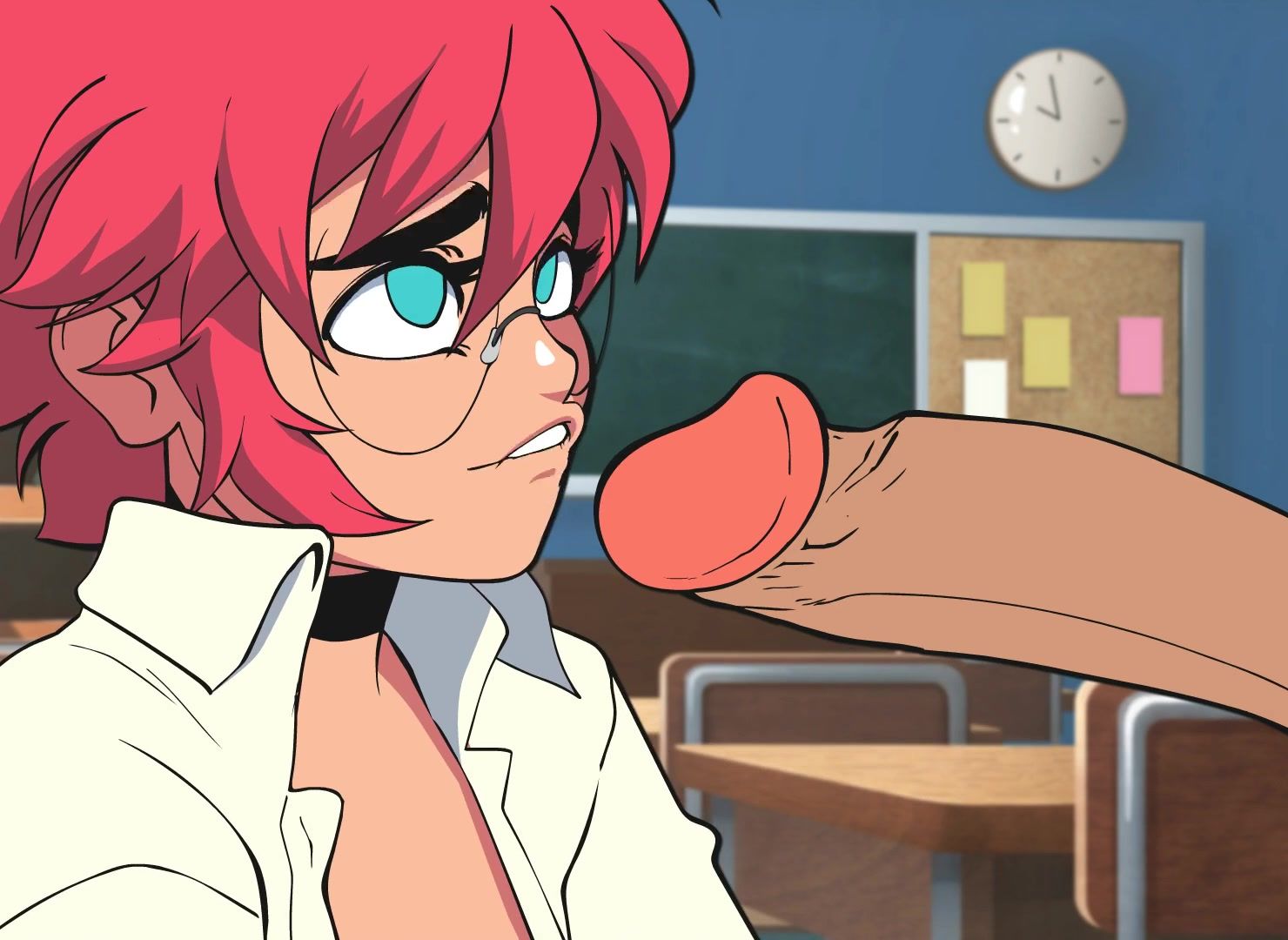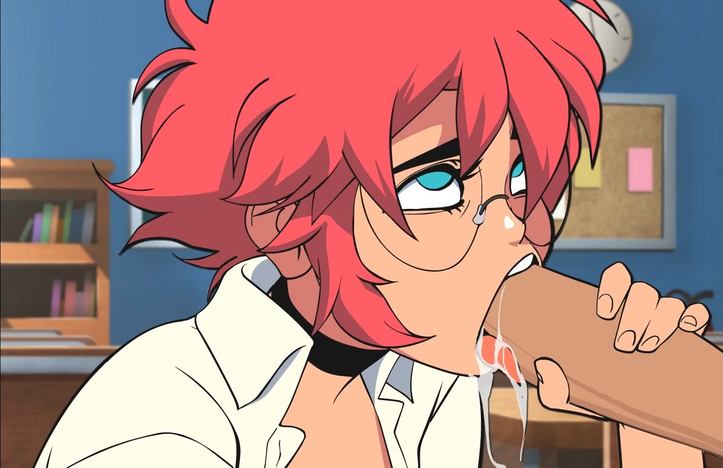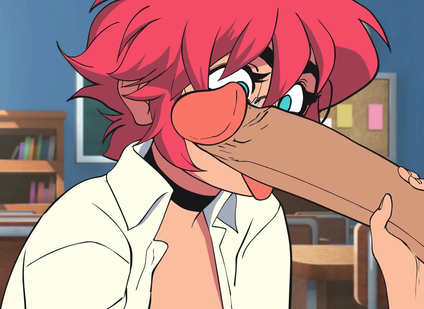 Anime nerdy Maxine blowing a monster cock