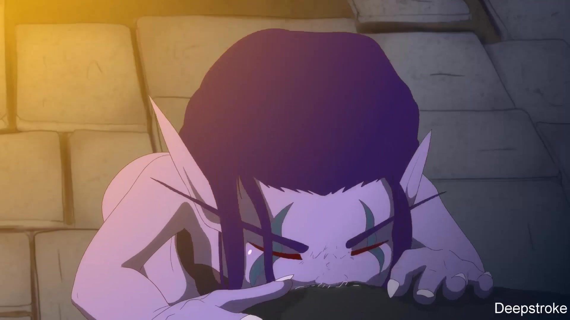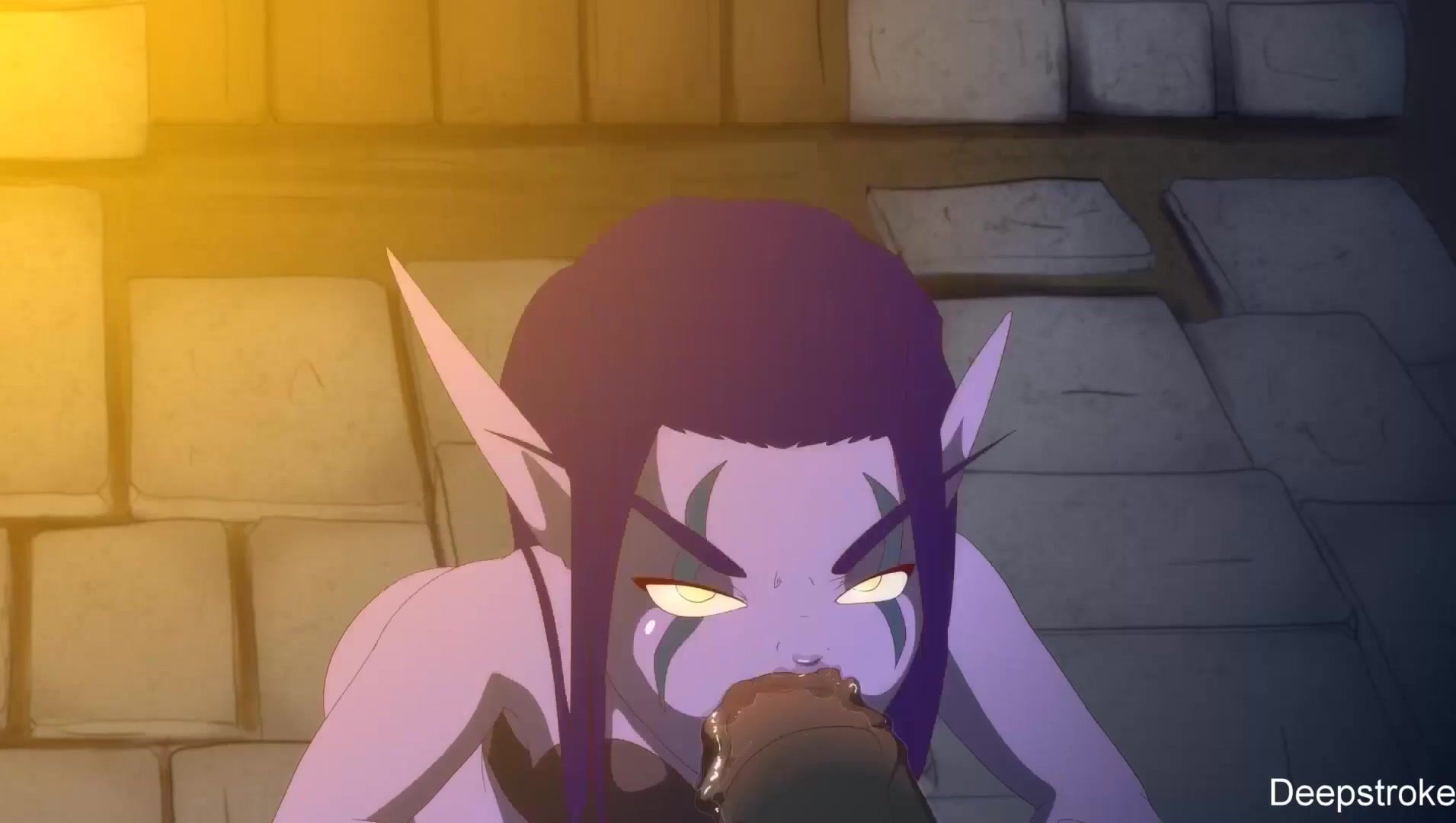 A bearded orc fucks and pours sperm on a big-eared elf, porn cartoon Warcraft