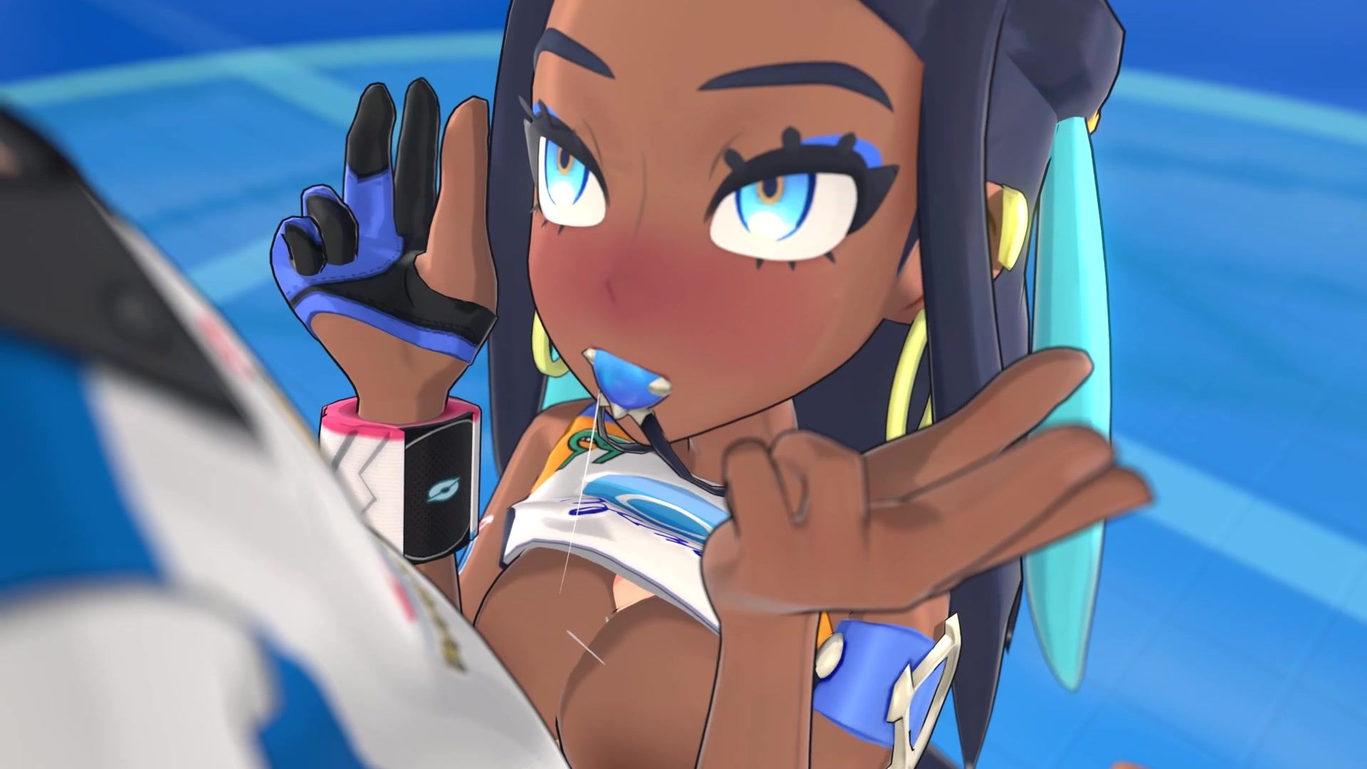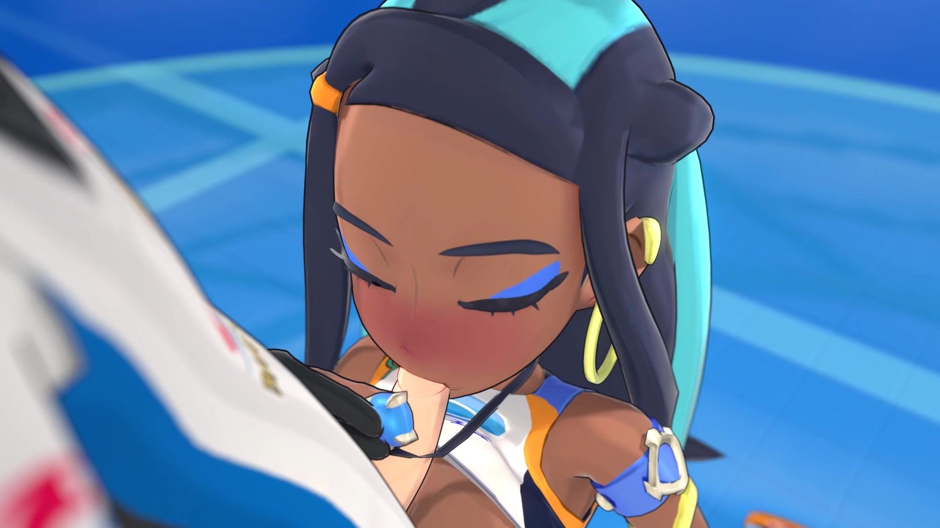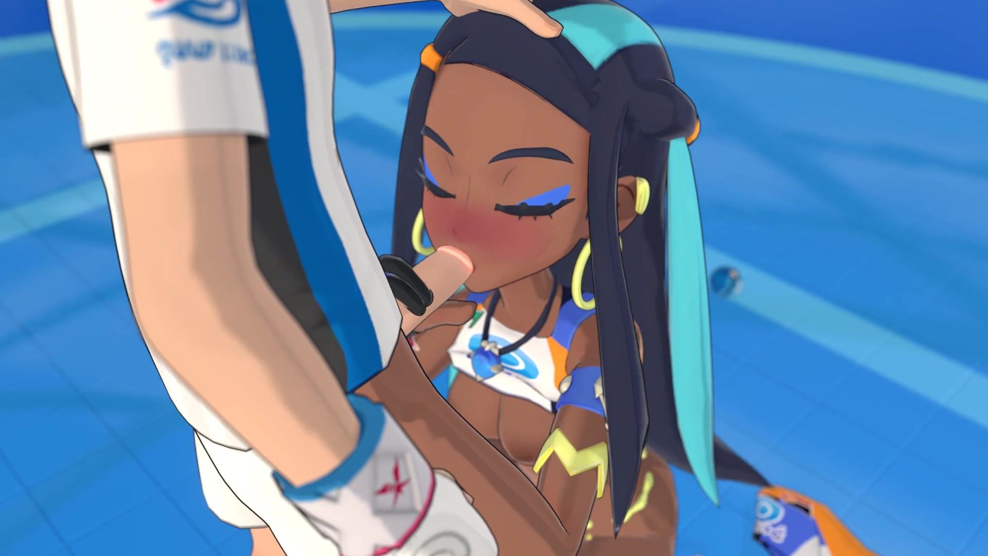 Flexible tan beauty Nessa from the cartoon Pokemon participated in a tournament and in the finals she fell for a very talented trainer. The girl didn't want to lose, so she just seduced the dude in front of the audience. After taking off her panties, she jerked off the guy's penis, and then sat on him in a twine.