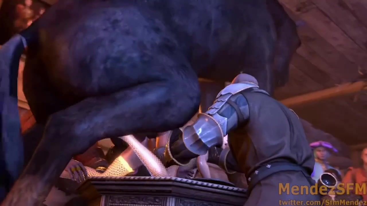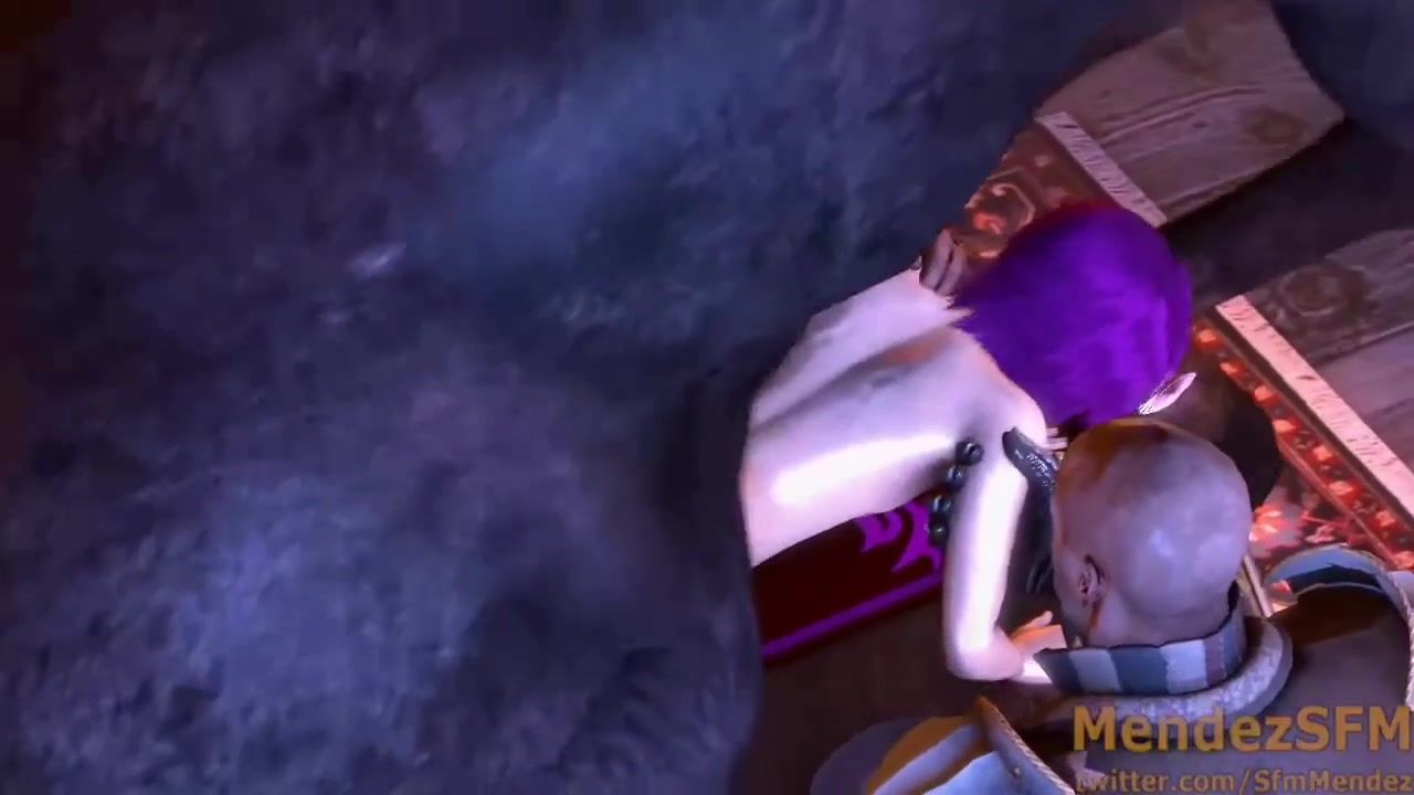 Brunette Ana Amari from Overwatch spreads her legs and gives herself to a man
