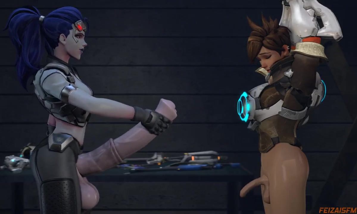 Widowmaker and Tracer in a Whose dick is bigger contest