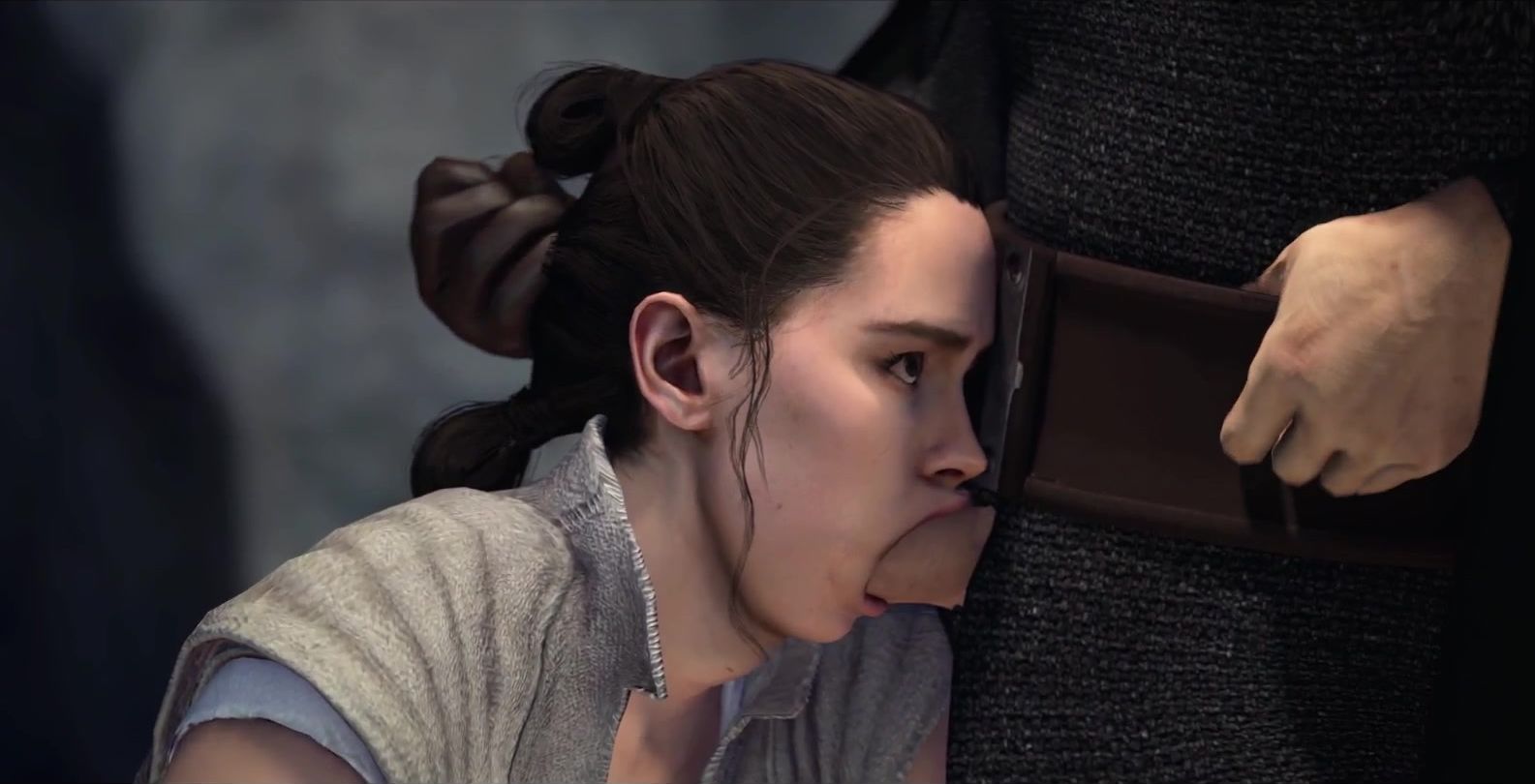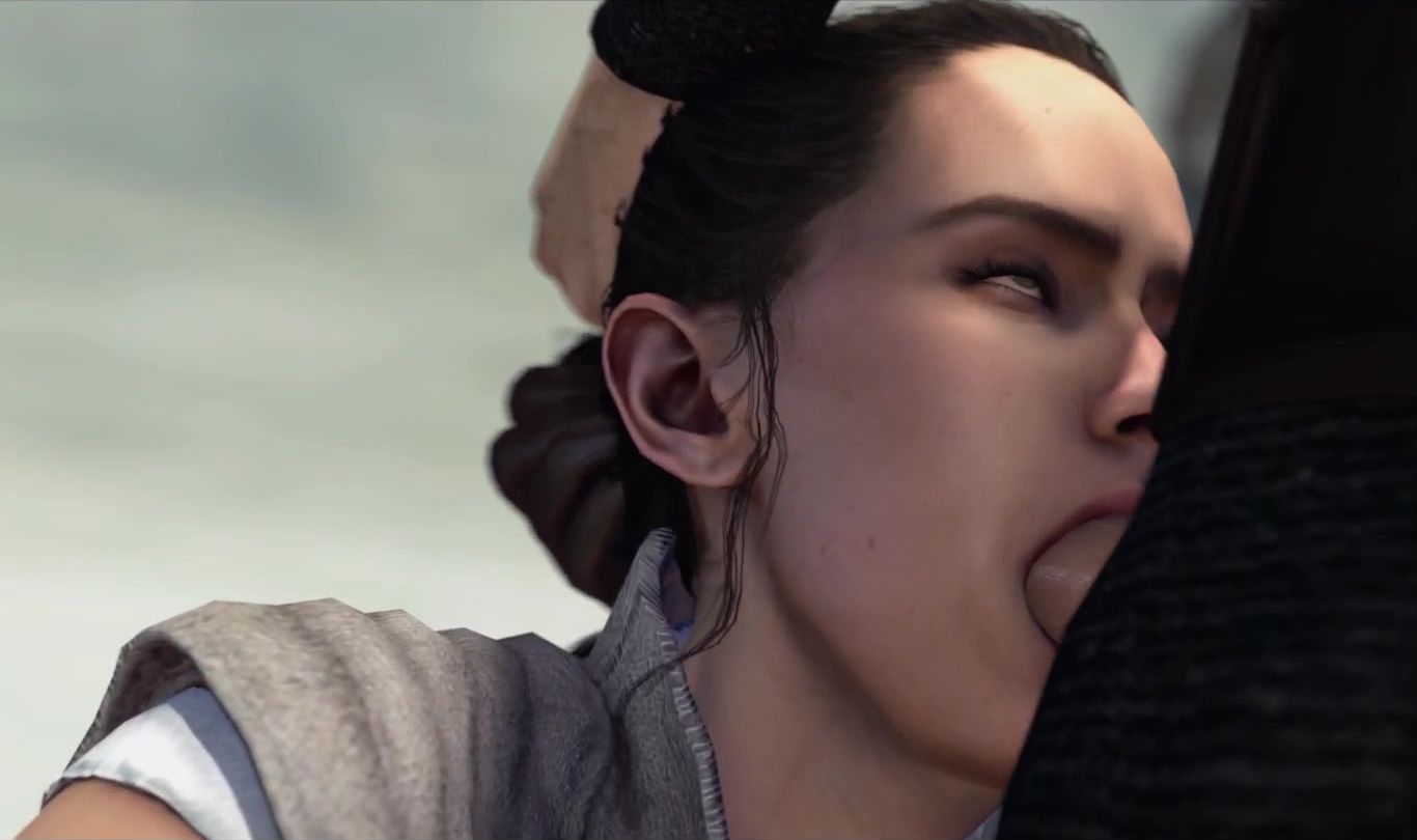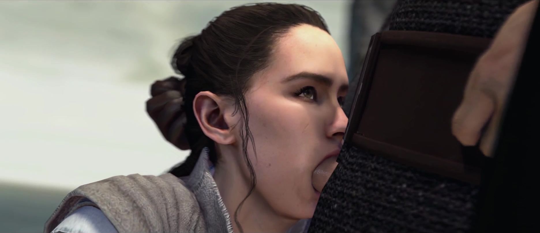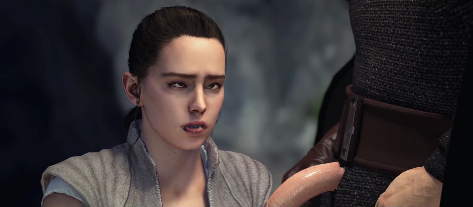 The Dark Lord tricked Rey Skywalker from Star Wars by promising to teach her unusual tricks with her secret power. But instead the pervert pulled out his hard penis and forced the little girl to take it in her mouth. In an instant it was in the beauty's throat, and a minute later it shot cum down her throat.