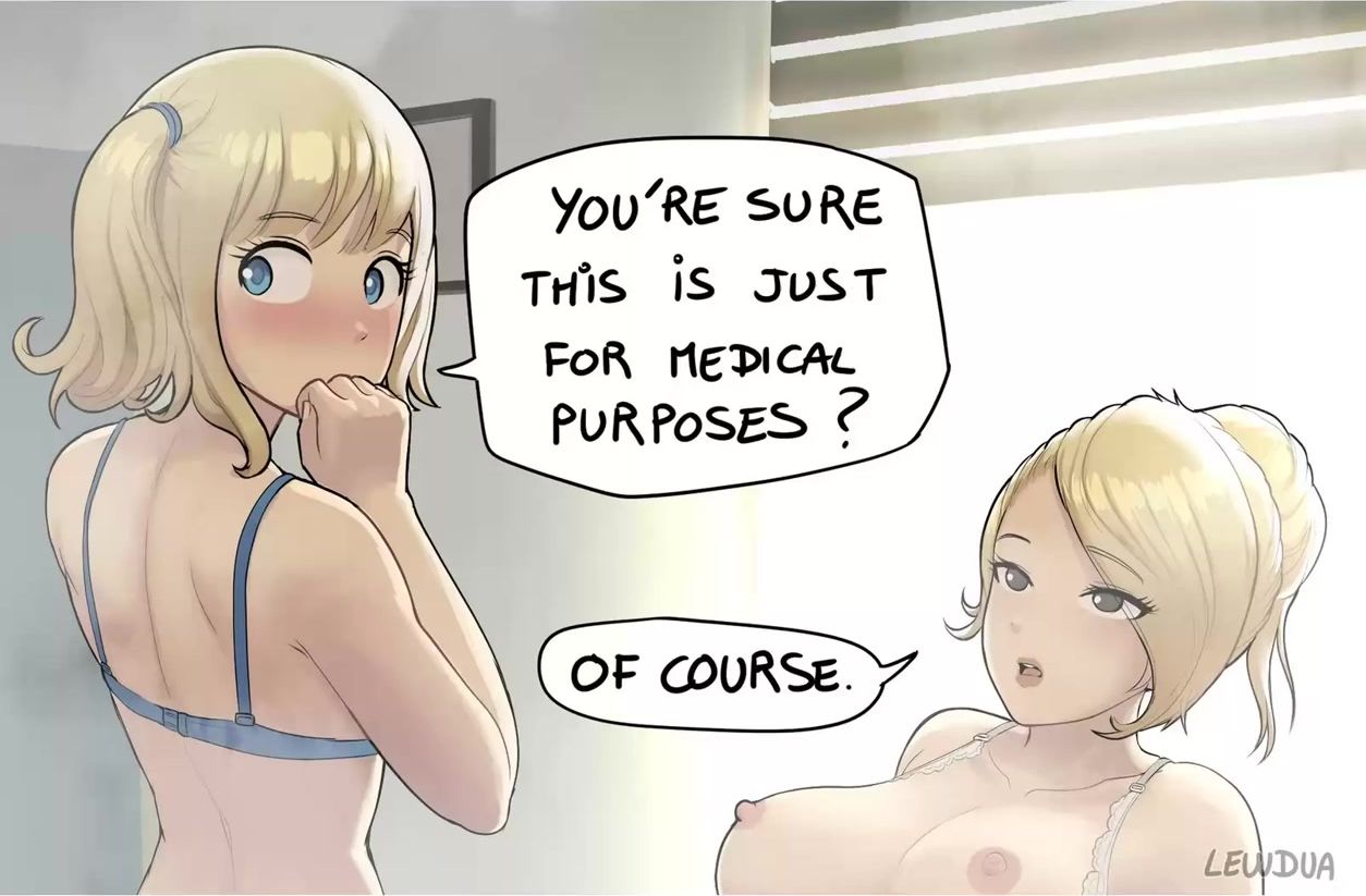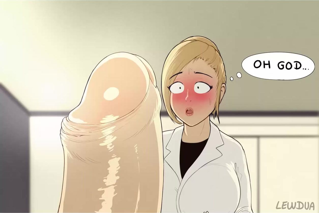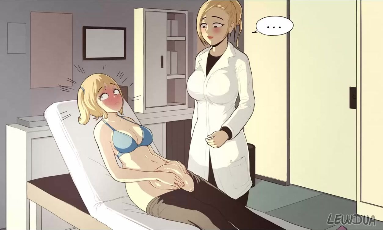 Shy Futanari letting a doctor take care of her cum-packed dong