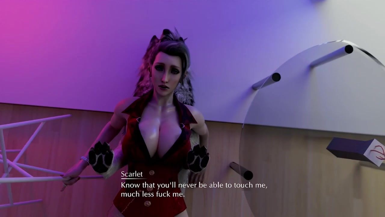 Scarlet's husband was so unsatisfactory in bed, from Final Fantasy, that she cheated on him with everyone. One day, when the woman couldn't find a lover for the night, she brought home a street dog. The dog's dick turned out to be quite fit for sex, so they had a great fuck.